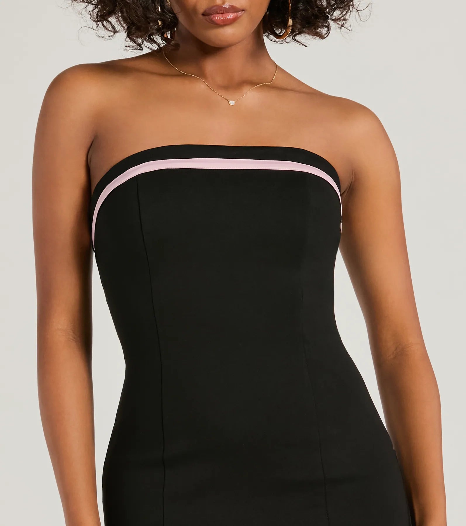 - Strapless neckline. contrast trim. non-slip grip lining