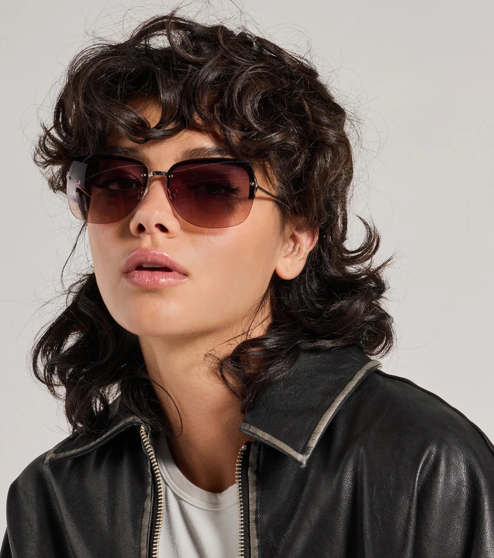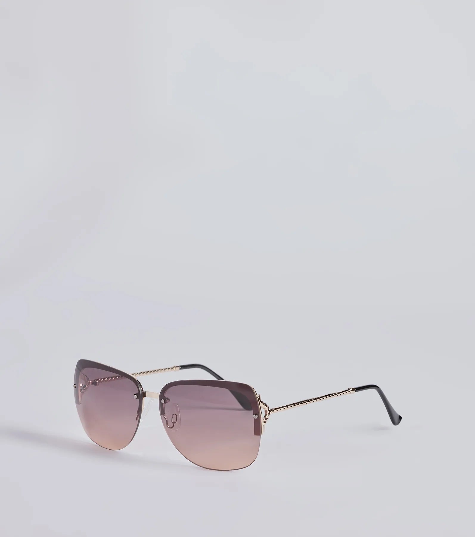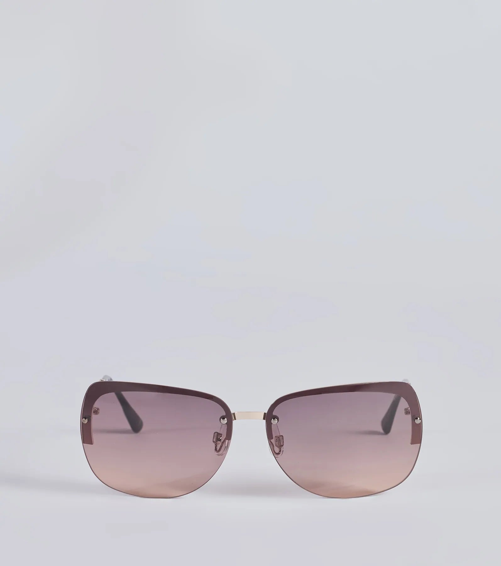 Level up in these rectangle sunglasses featuring a rimless design. rubber nose supports. and supportive arms. Perfect for everyday wear.