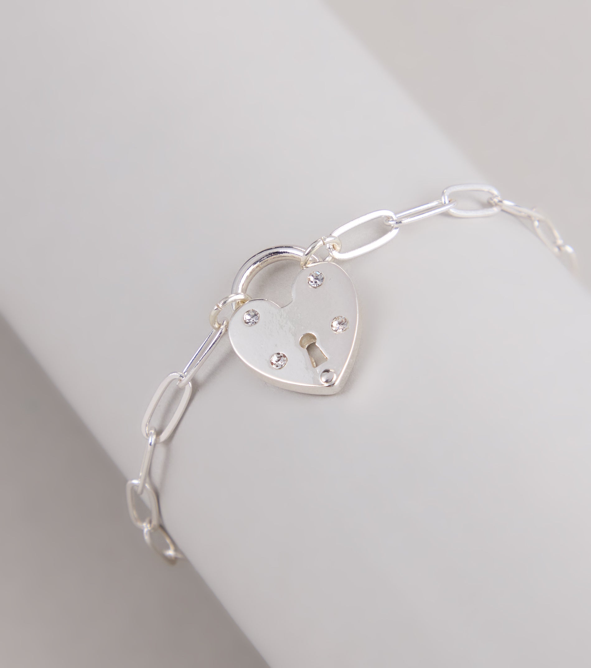 For the girl who holds the key to her own vibe. This heart lock bracelet adds just the right mix of sweet and edgy with a dainty chain and subtle sparkle.