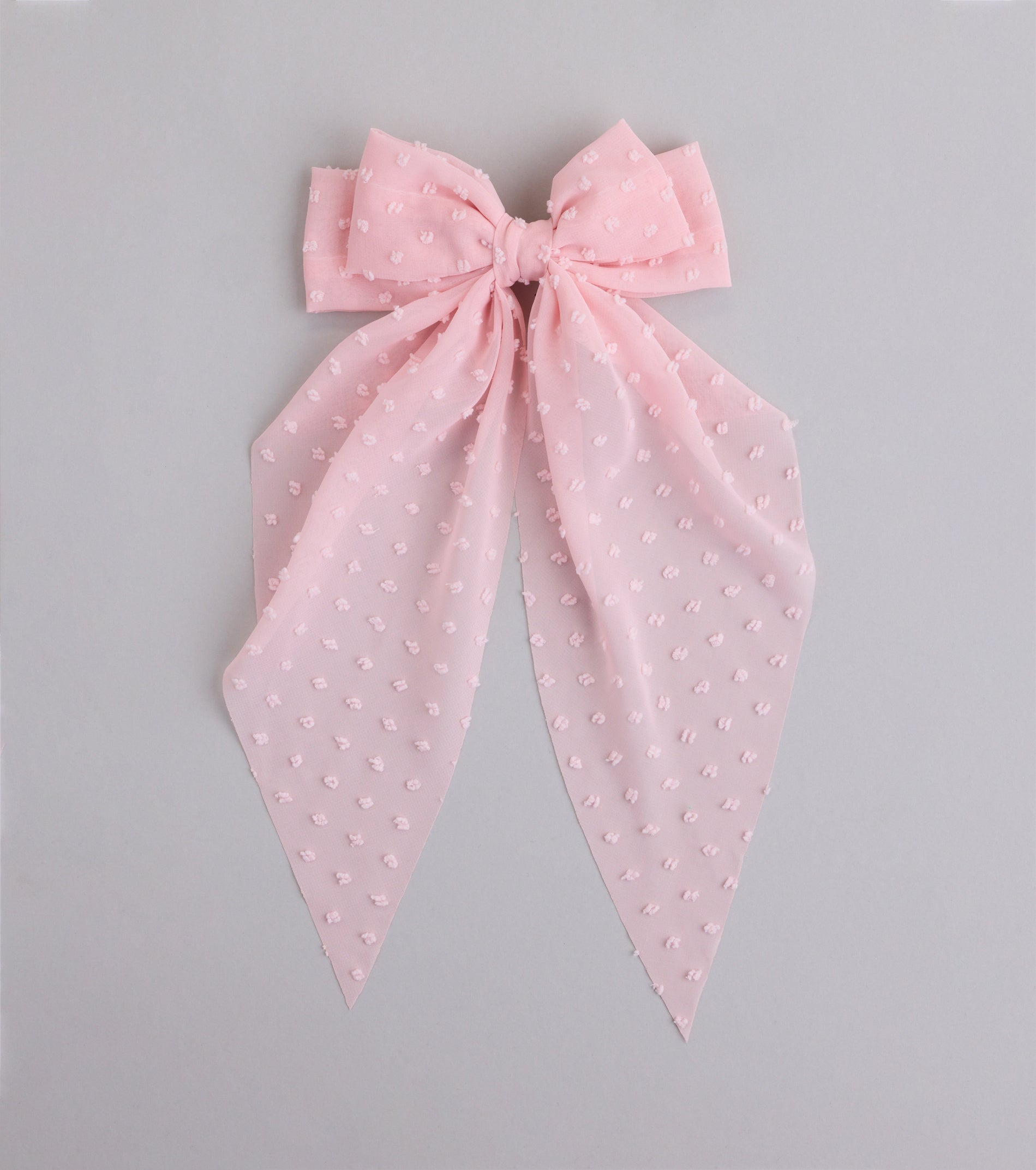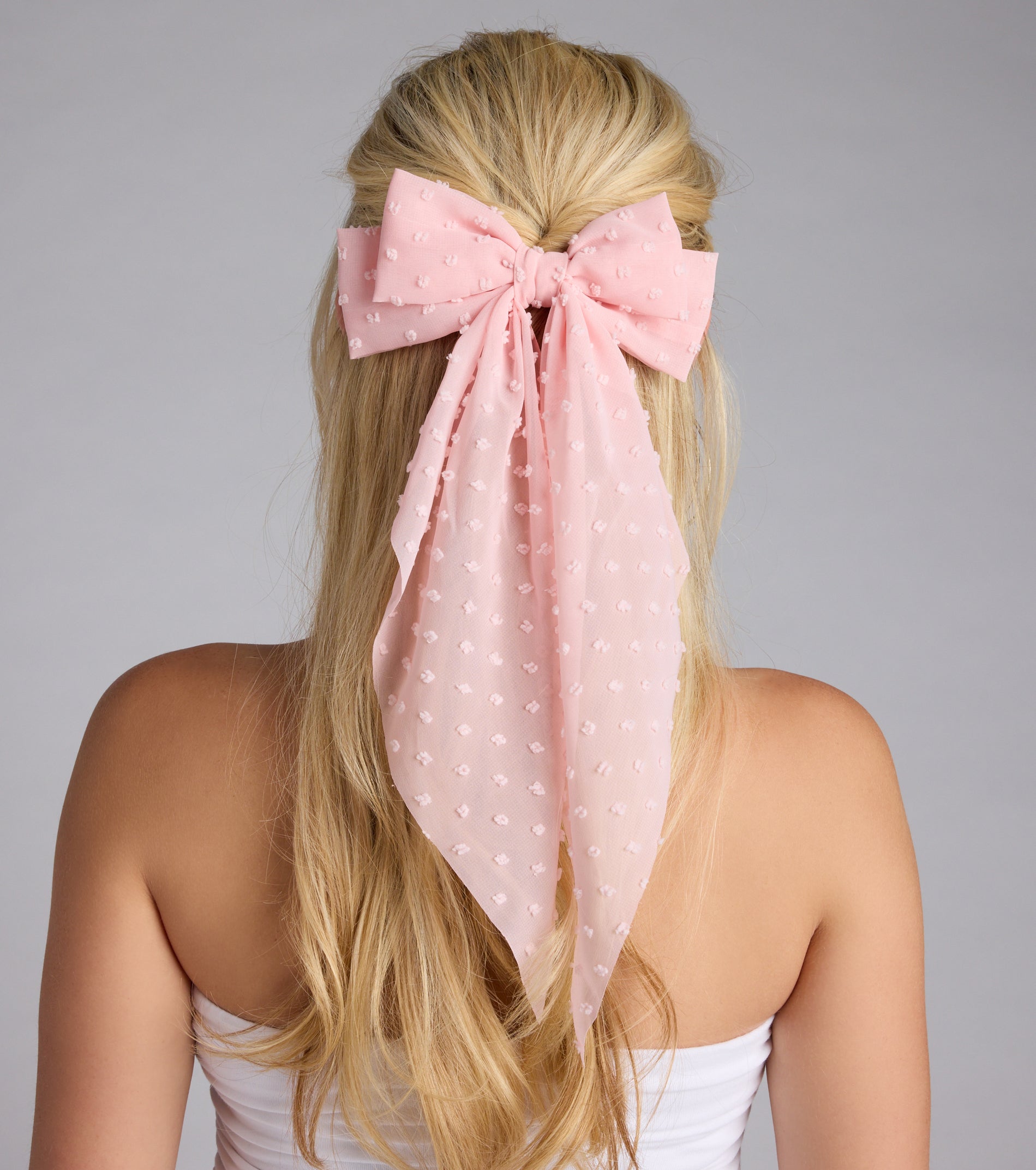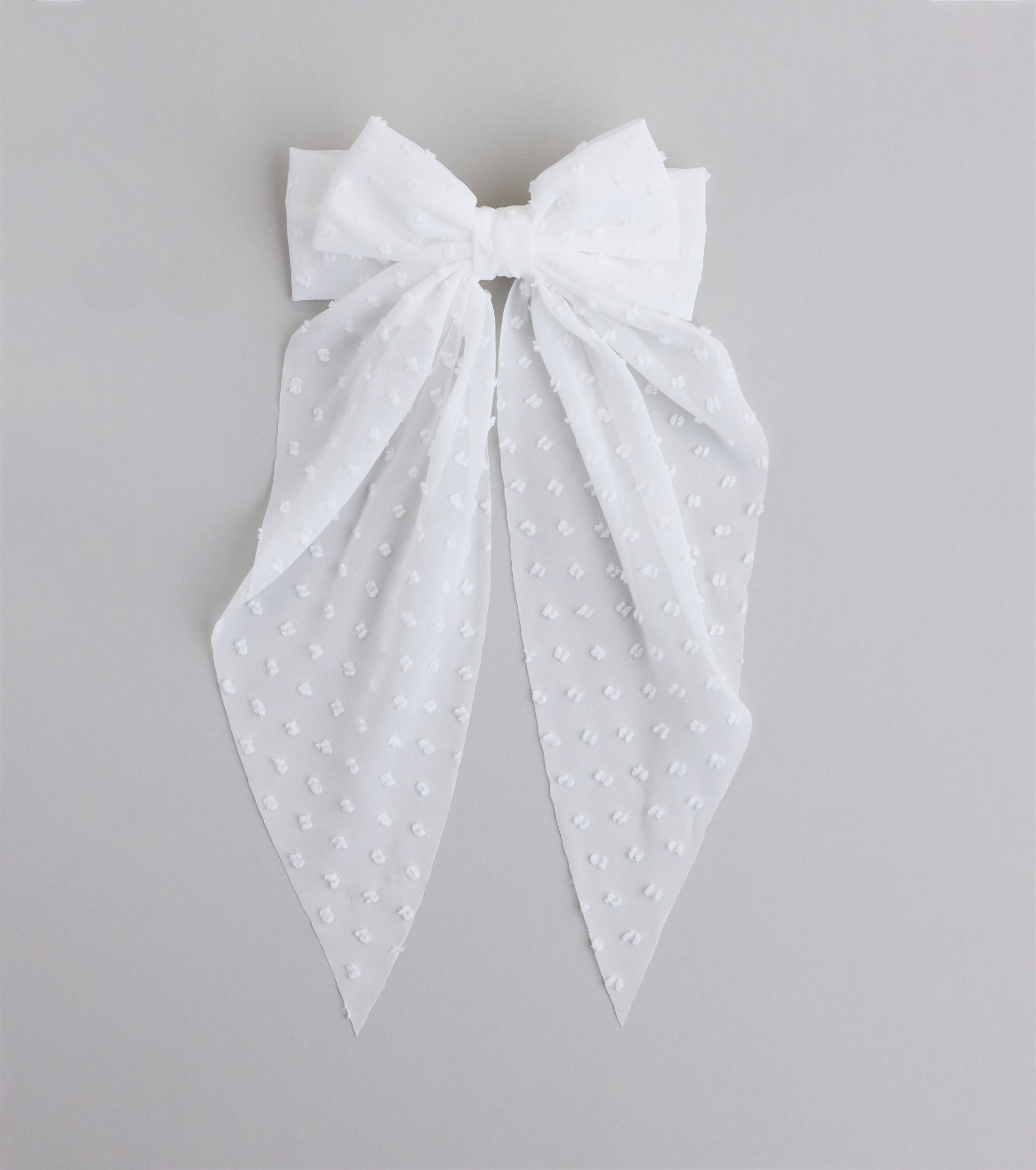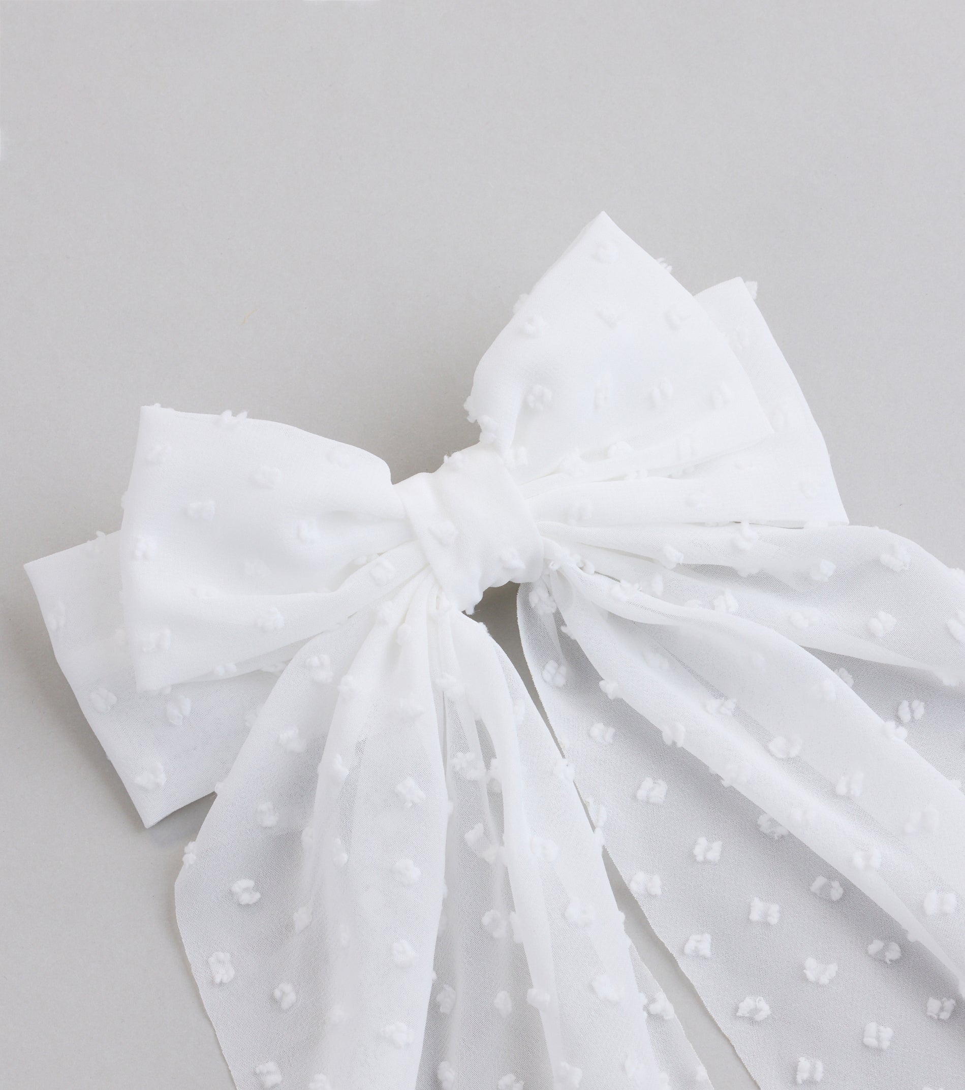 Create lovely hairstyles with this sheer hair bow with a chic swiss dot pattern.