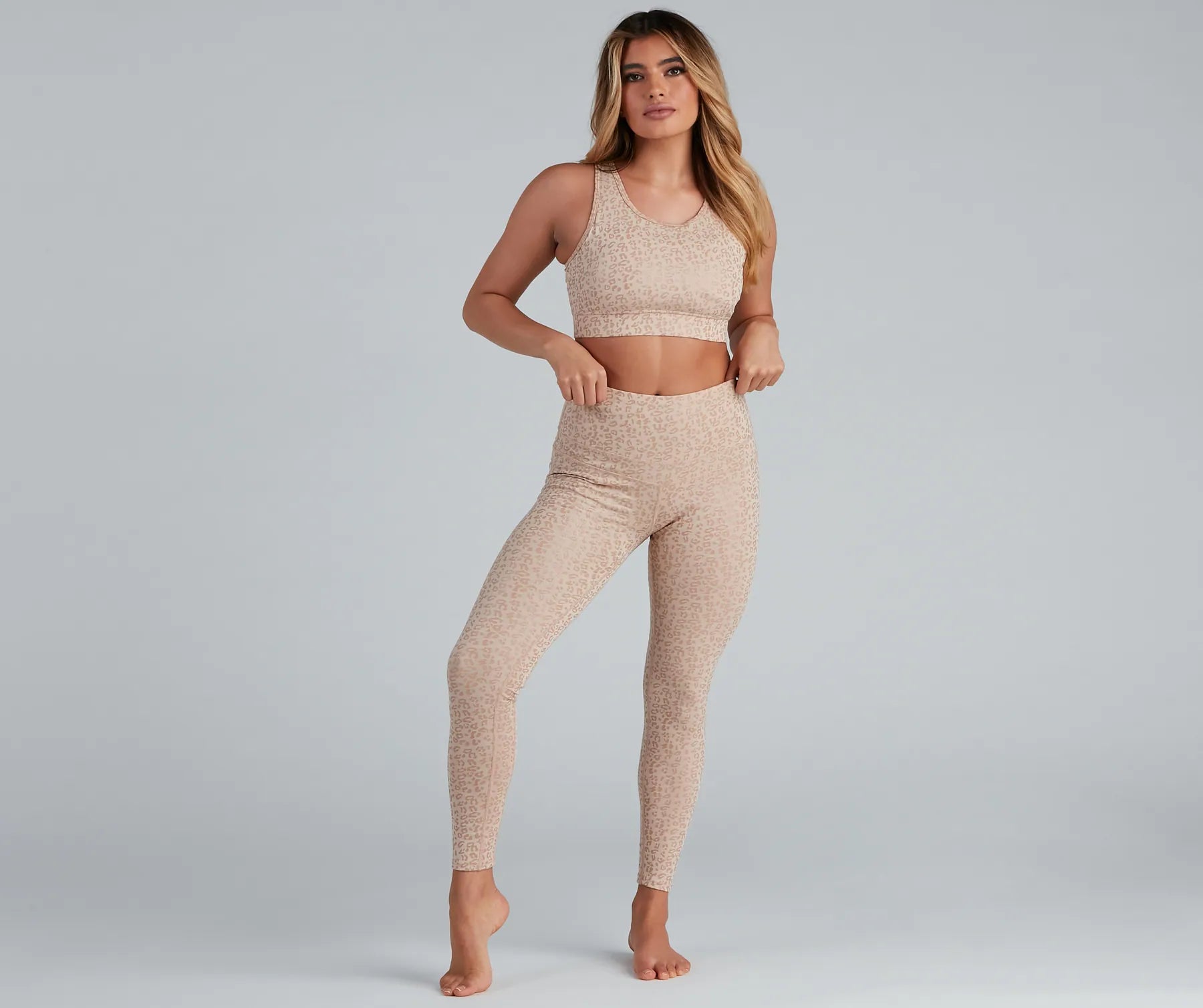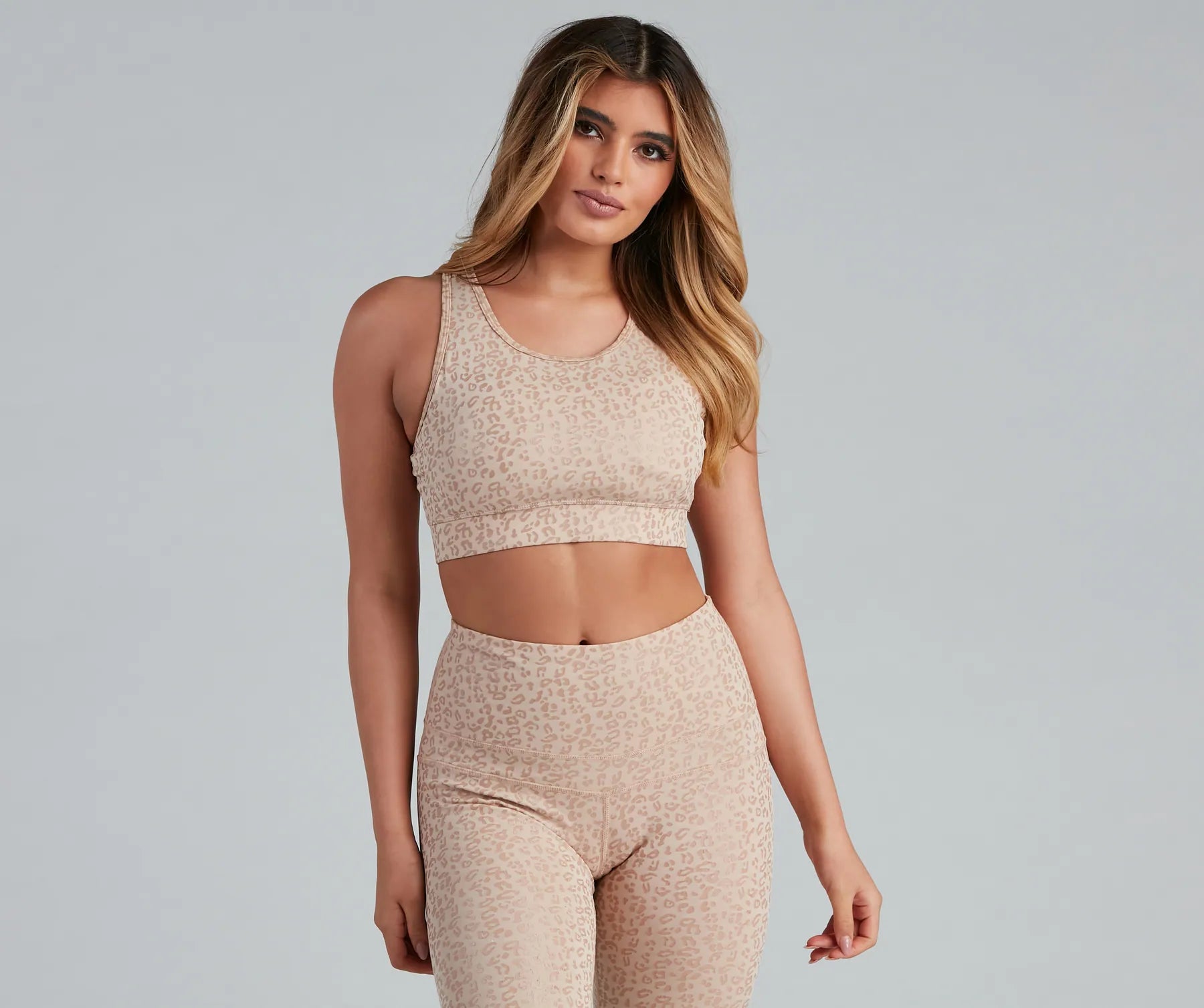 Slay your workout in this leopard active sports bra for your next gym sesh! It features a high neckline. removable padding for support and shaping. an elasticized hem. and a sleek racerback. Composed of moisture wick fabric to keep you cool and comfortable. Style with the matching leggings.?