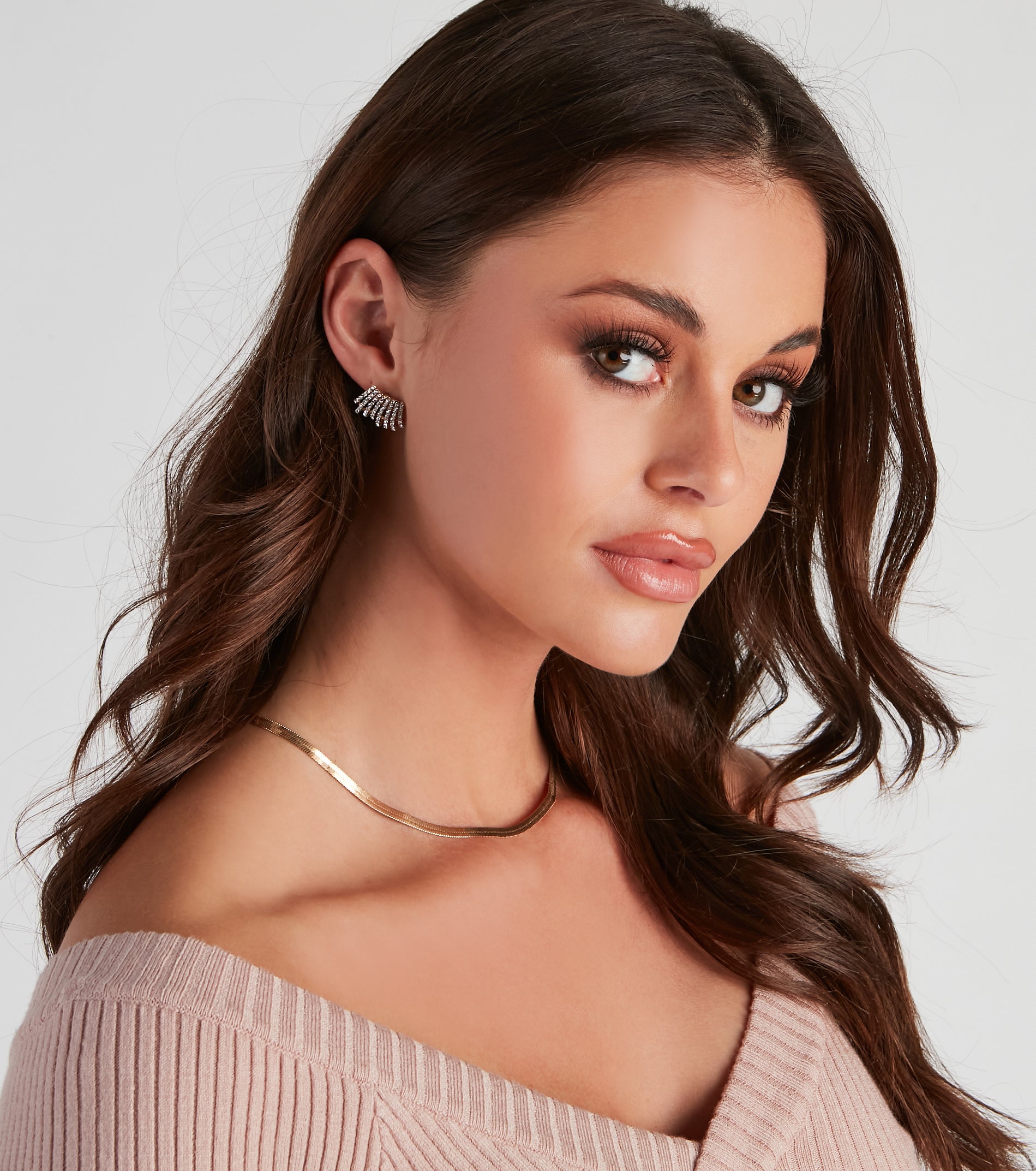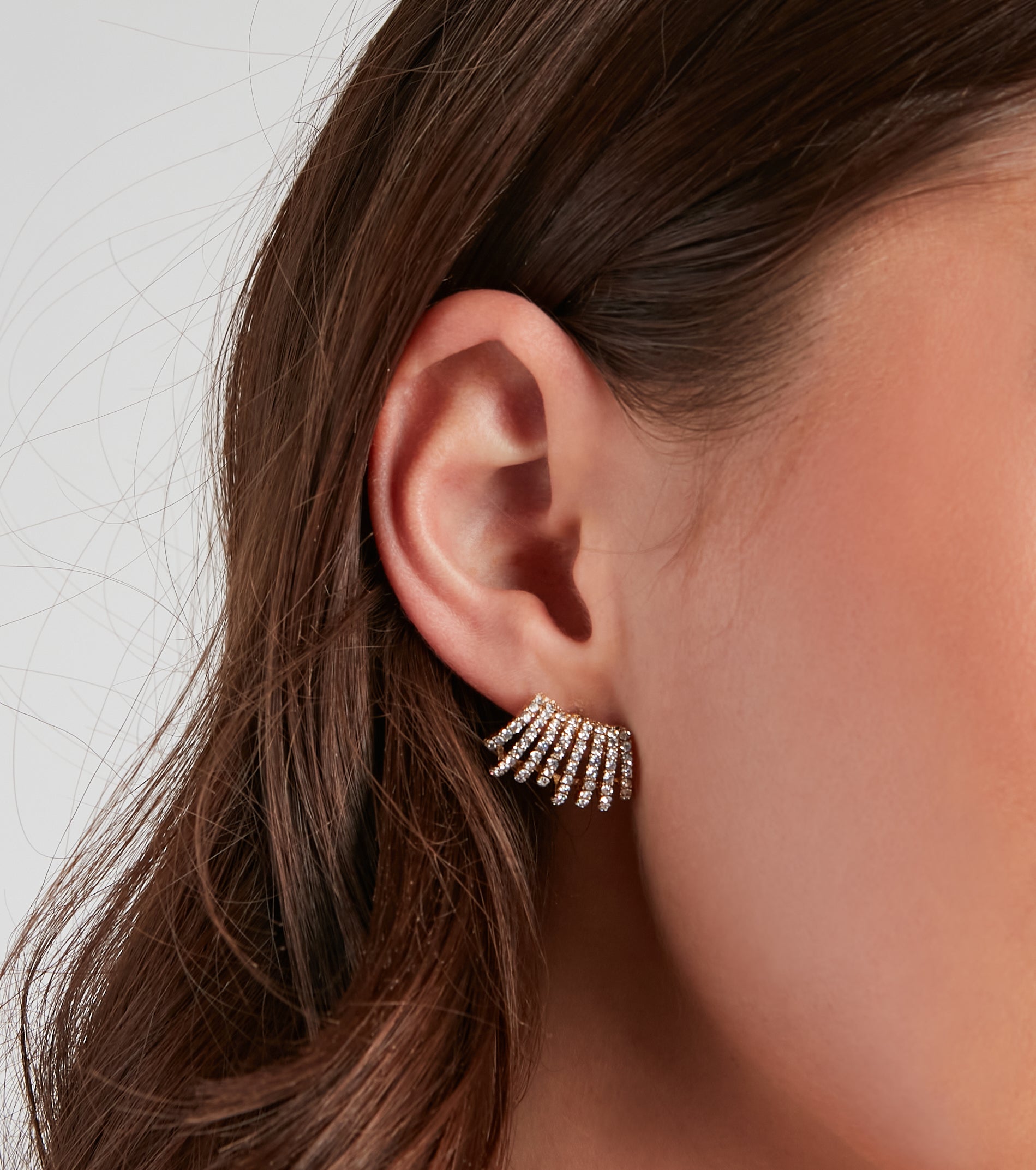 These sparkly embellished stud earrings will give off a gorgeous luxe radiance! They feature a curved cuff design with mini rhinestone embellishments. Style with a dainty .