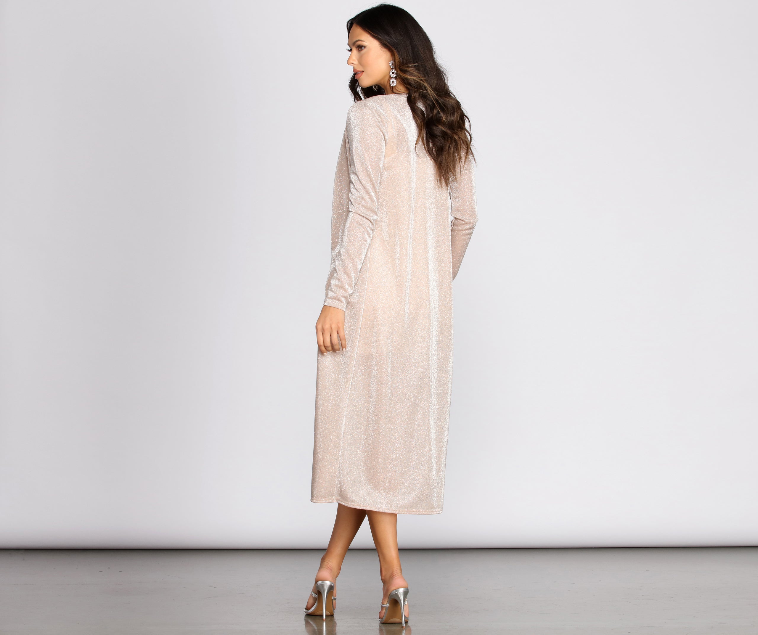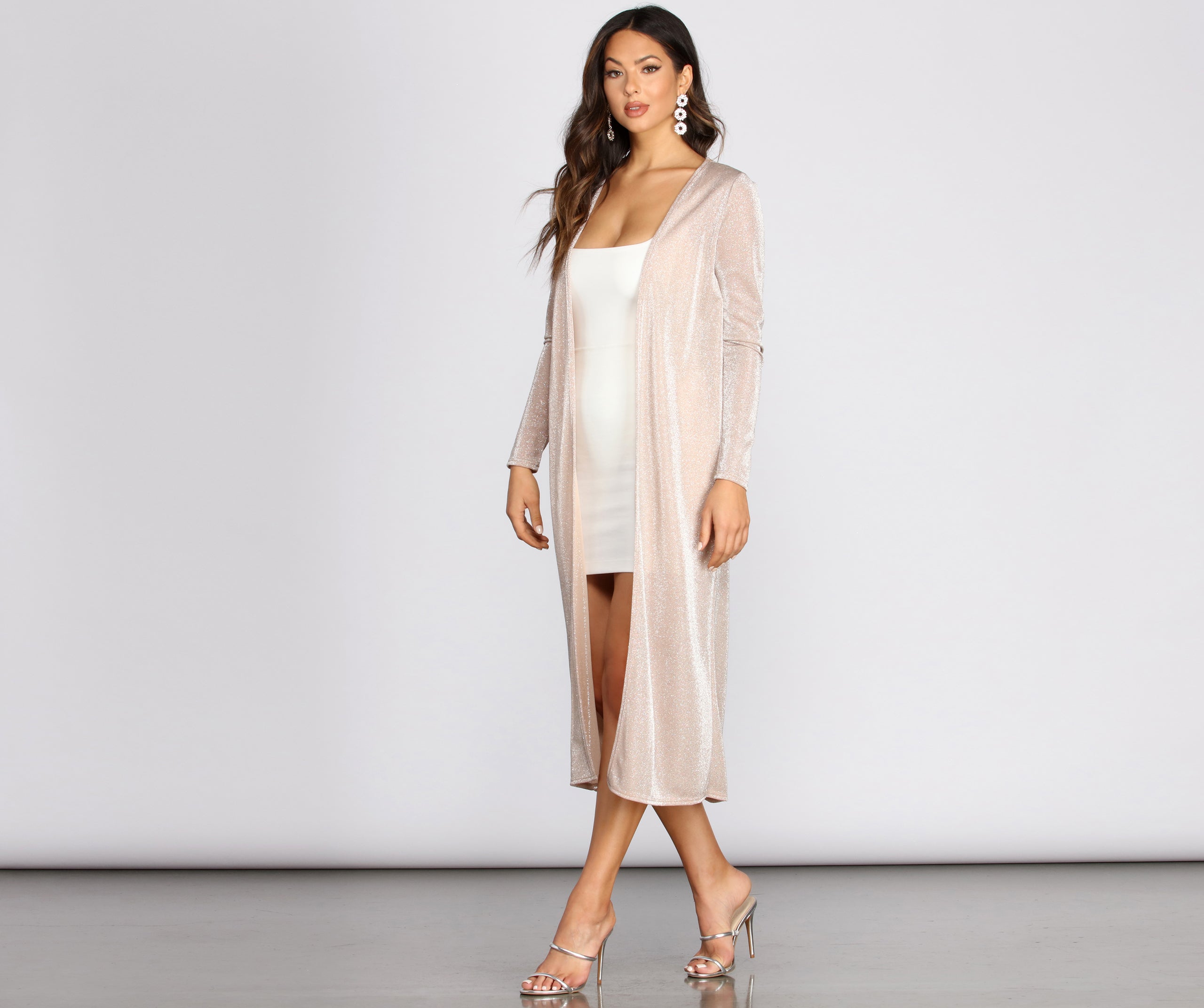 We’ve got a major diva alert! This glam glitter knit duster is calling your name.