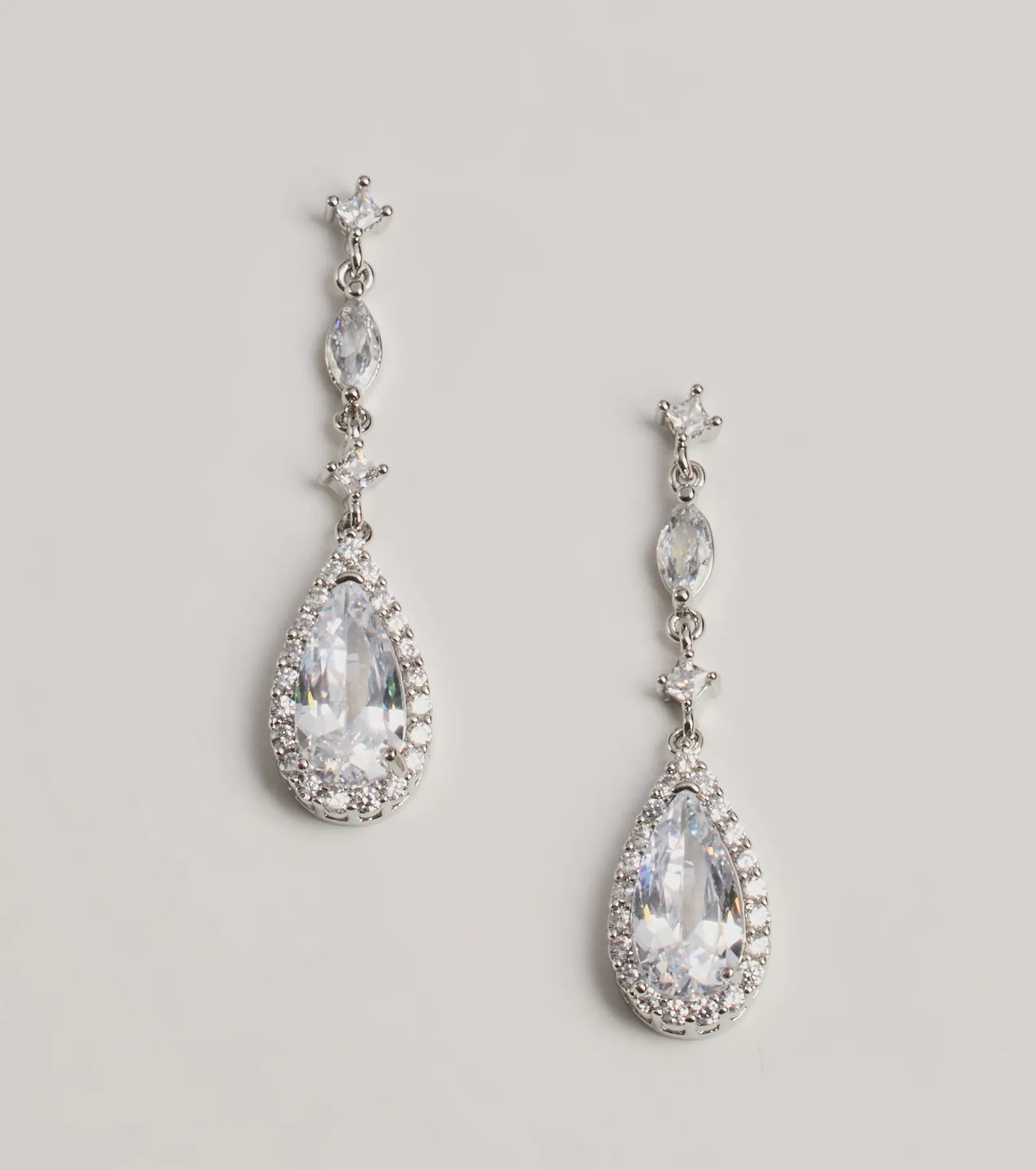 Make dazzling memories in these rhinestone teardrop earrings that’ll sparkle all night. Pair with a clutch.