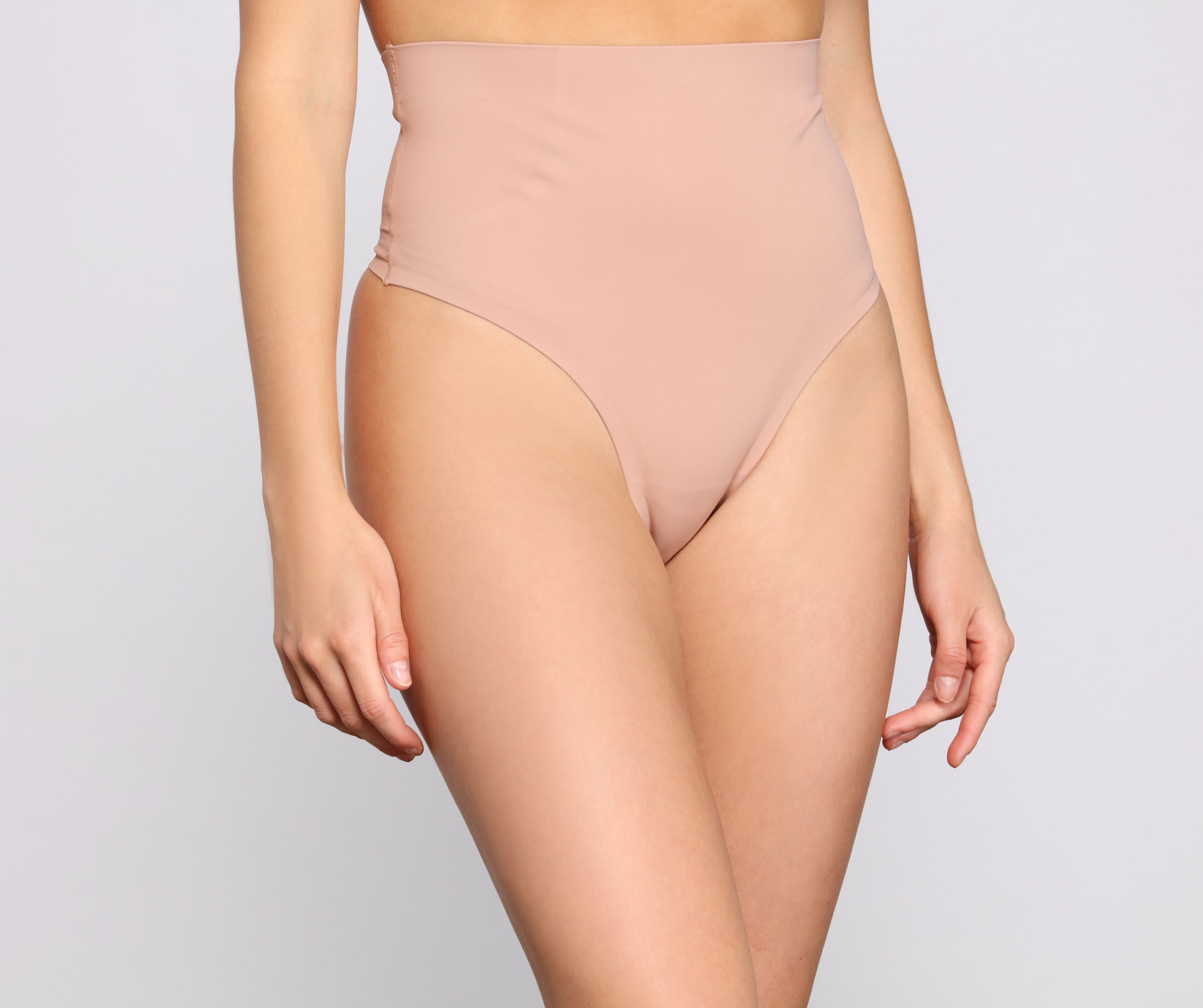 Create a sleek and seamless silhouette with this must-have shaper! It features a flattering mid-rise waist. a mesh insert. and a thong bottom. Style under your fave ?and form-hugging jumpsuits.