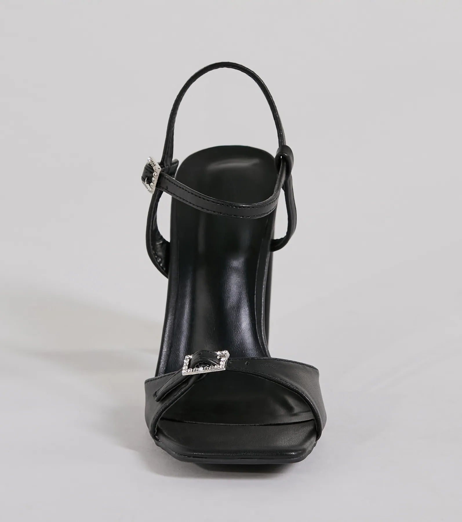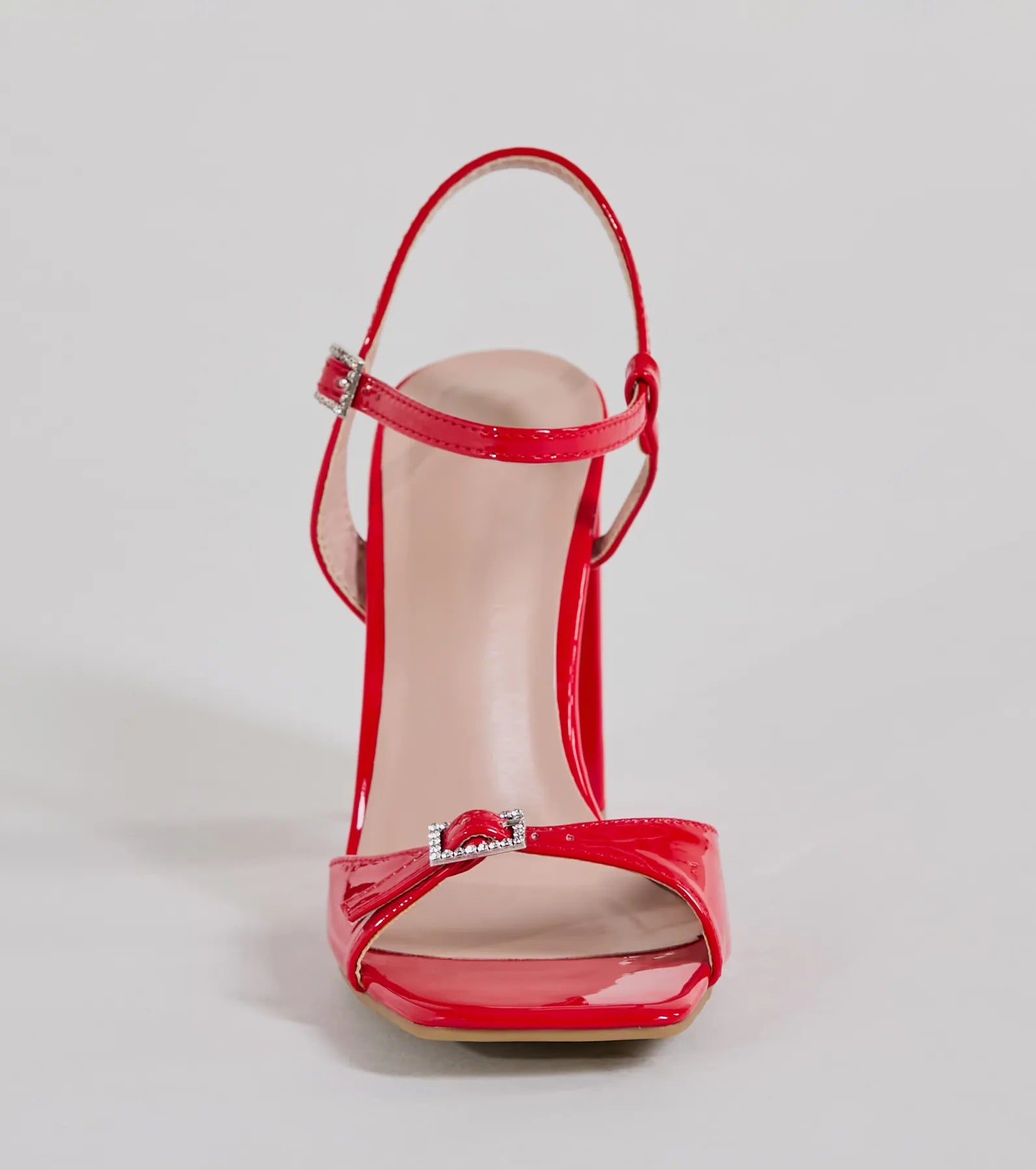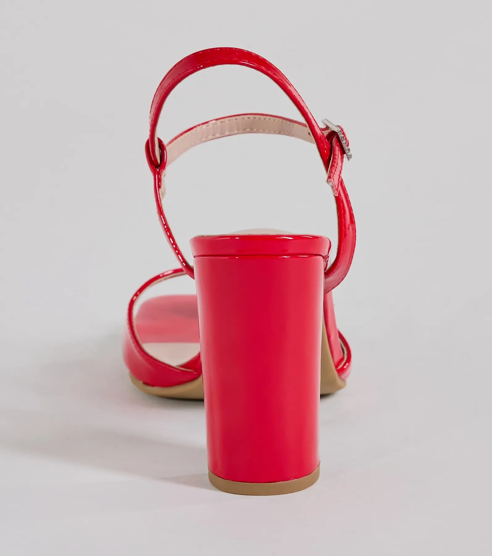 These patent block heels are any shoe lover’s dream come true for a chic glam strut! The square toe and rhinestone buckle strap add a touch of glamour. while the block heel. adjustable ankle strap. and cushioned insole provide comfort and support. Complete the look in a for a dressy occasion!