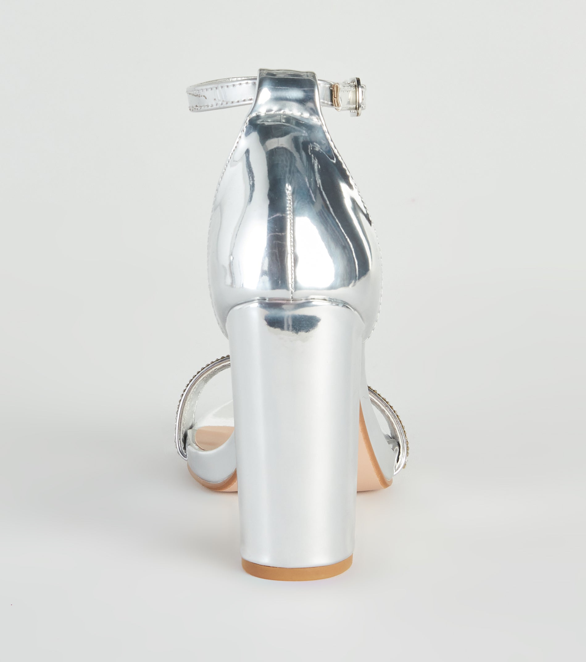 You’ll totally admire your glam strut in these metallic block heels perfect for semi-formal and special occasions! They feature an almond toe. a rhinestone embellished toe strap. a closed ankle. adjustable ankle strap with?buckle closure.