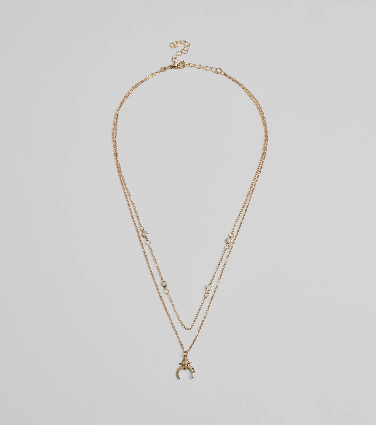 Get in touch with your celestial style in this layered necklace featuring a moon and star charm and mini clear stones that put your outfit out of this universe! Complete the look in .