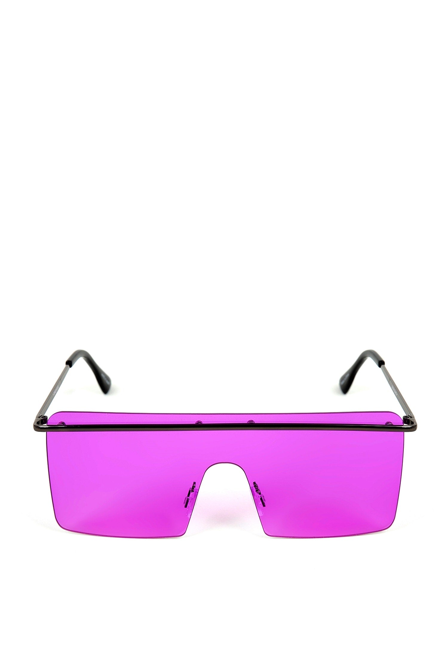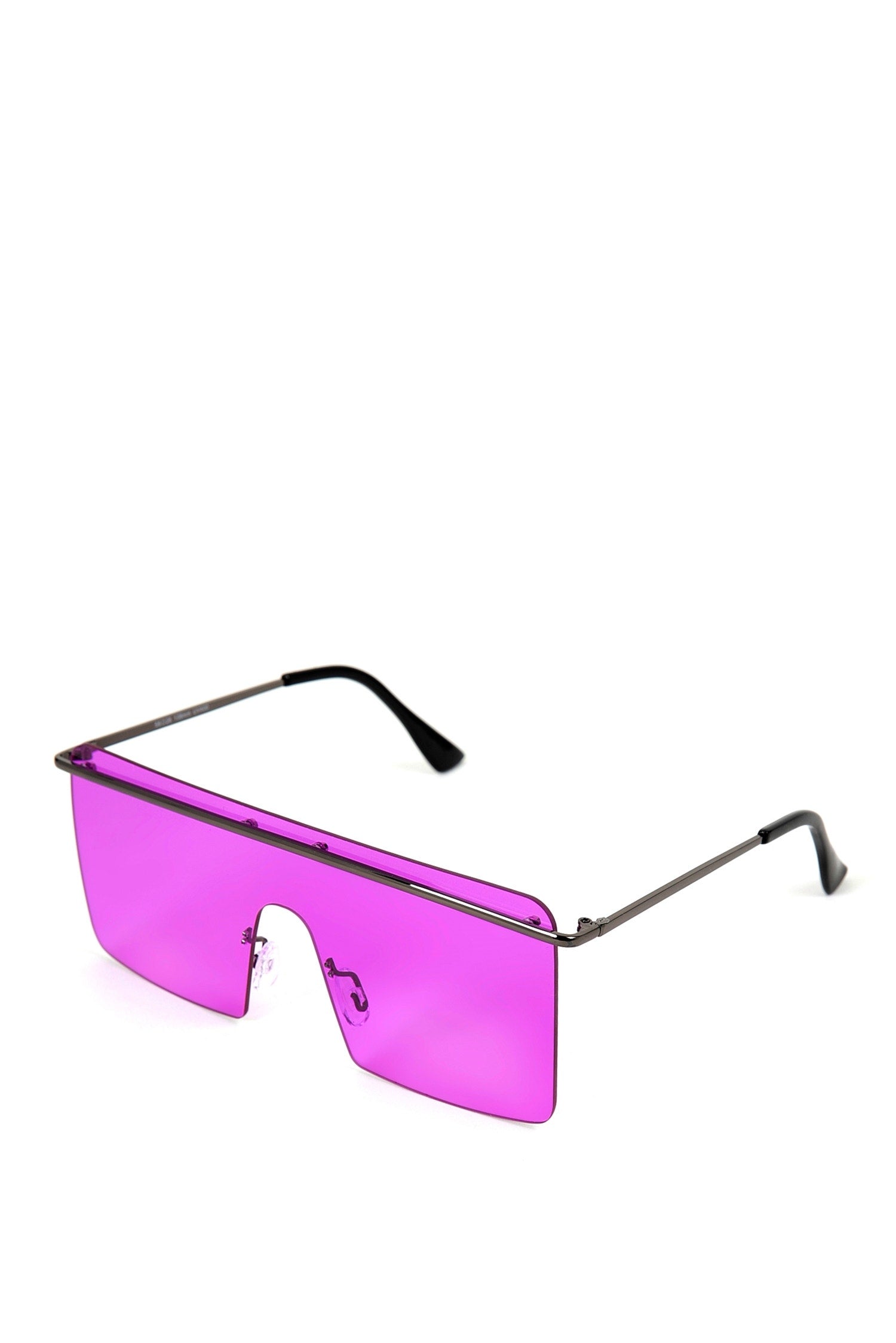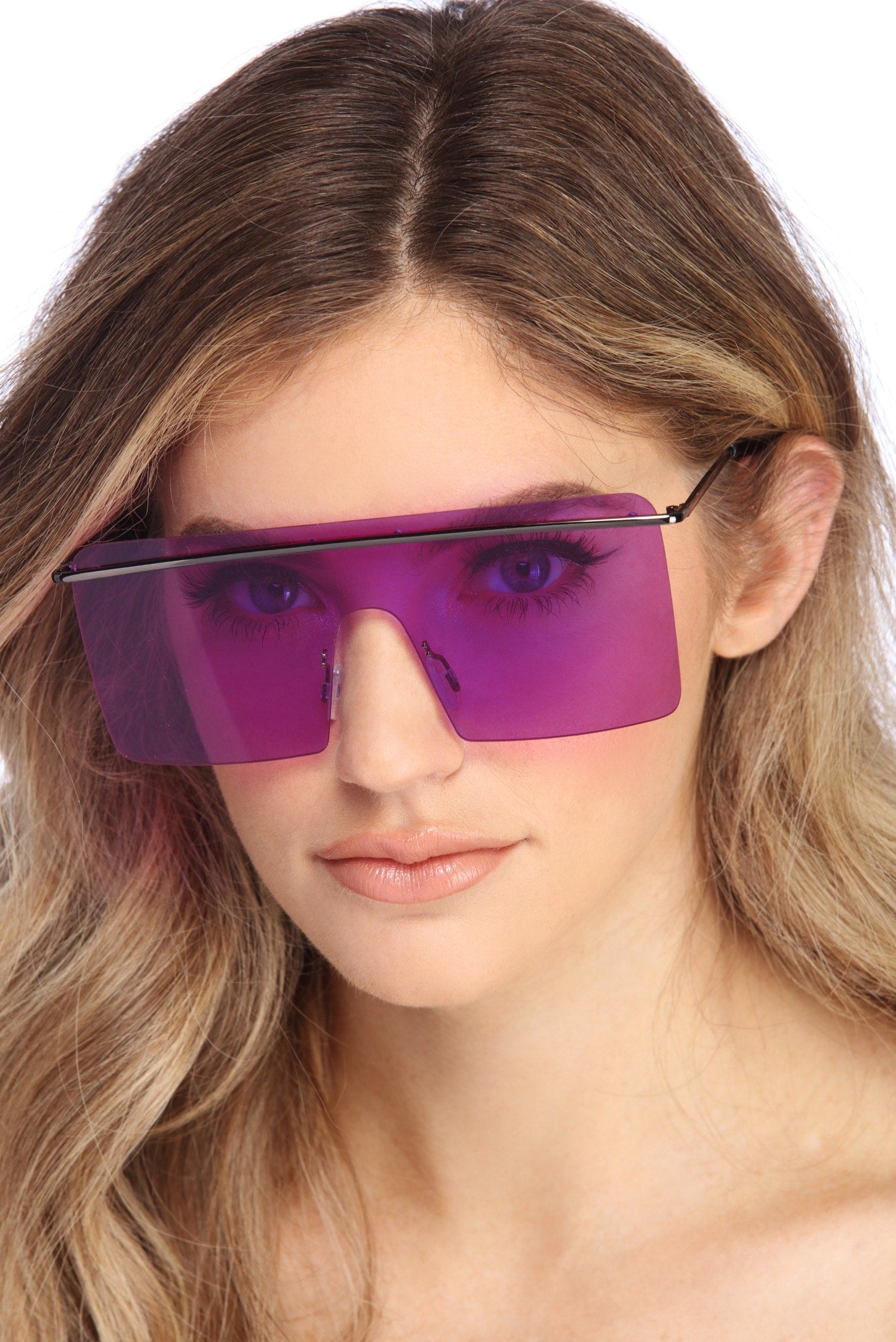 Look like an out of this world beauty with these trendy sunnies! They feature a square design with a brow bar. nose pads. and purple ocean lenses. Offer 100% UV protection.