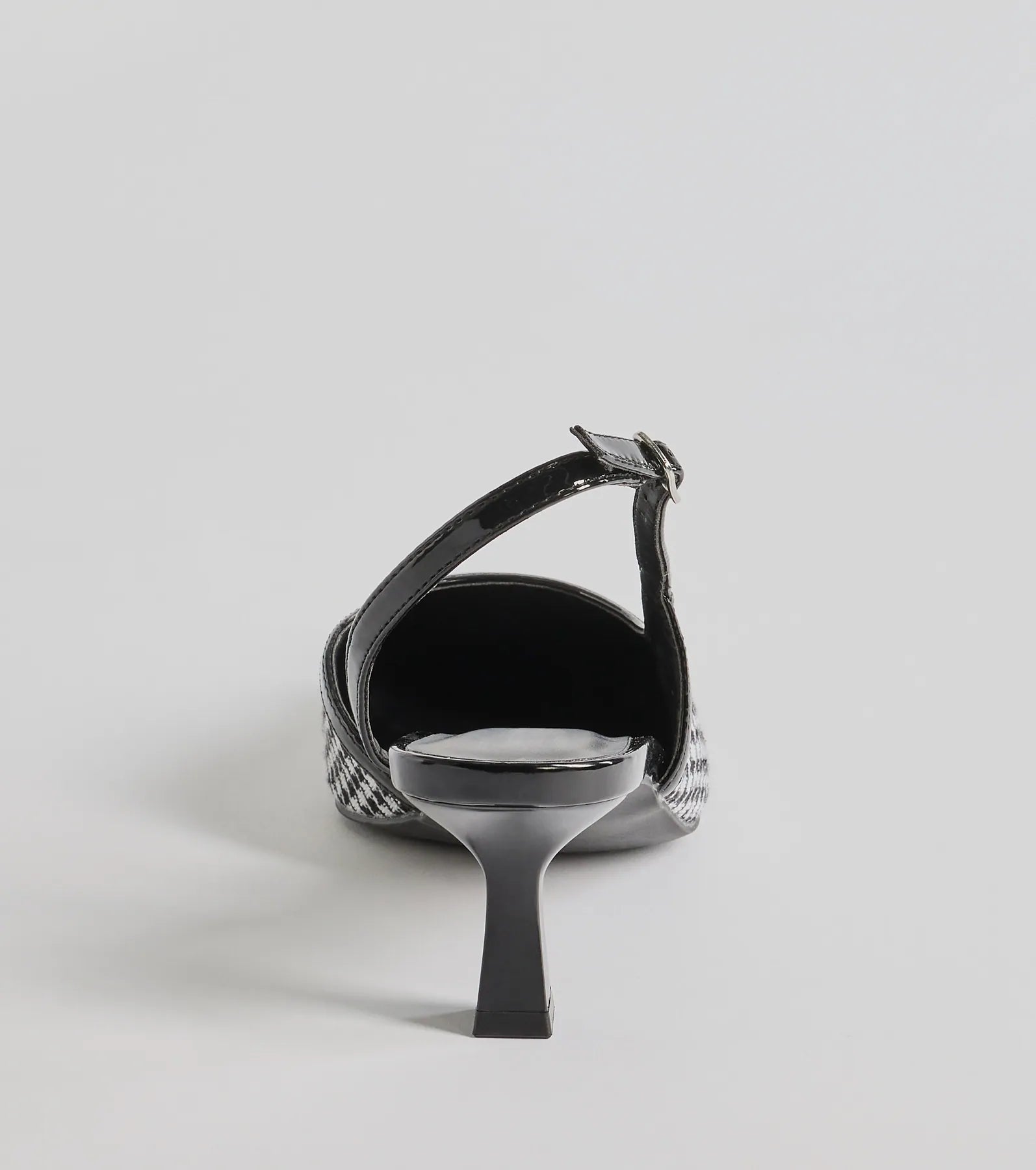 - Adjustable sling-back strap. buckle detail