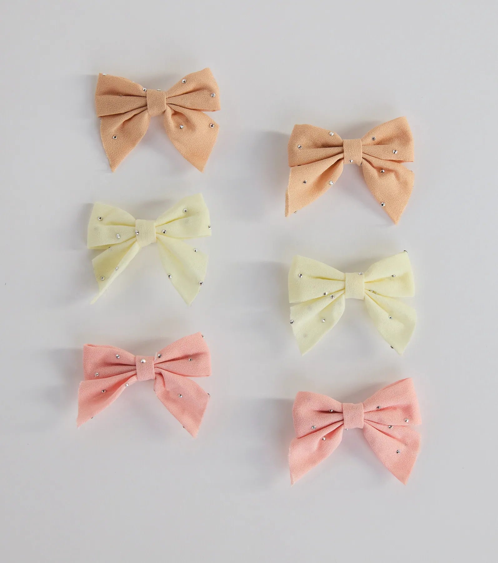 Get the perfect accessory for your hair with this six-pack of mini hair bow barrettes! Each mini bow barrette is adorned with sparkling rhinestones and metal clip closures to style your hair. adding an extra touch of glam. Complete the look with adorable .