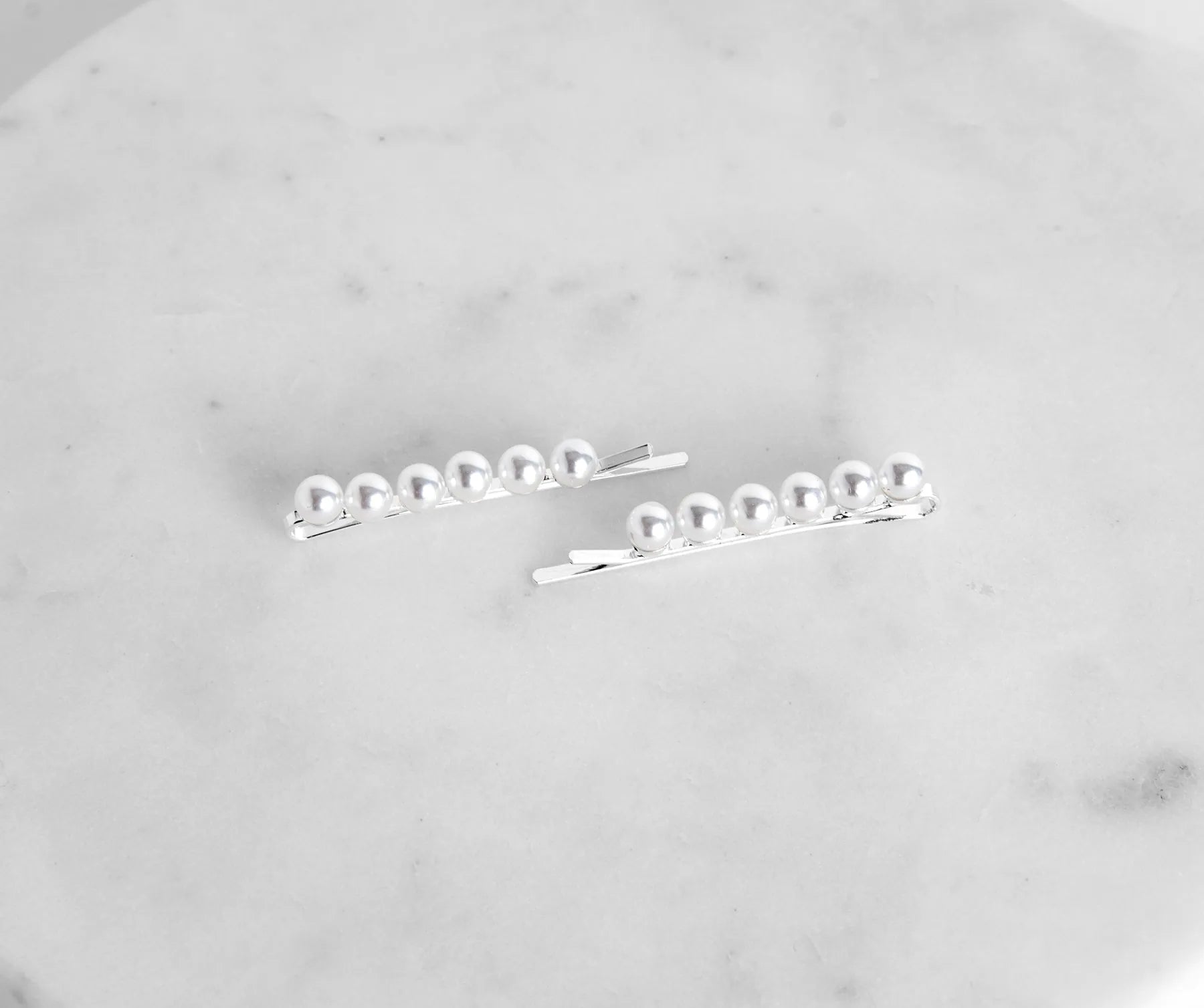 Give yourself a soft and feminine look on your special day! This pack includes a set of two small hair pins embellished with pearls and designed to slide on!