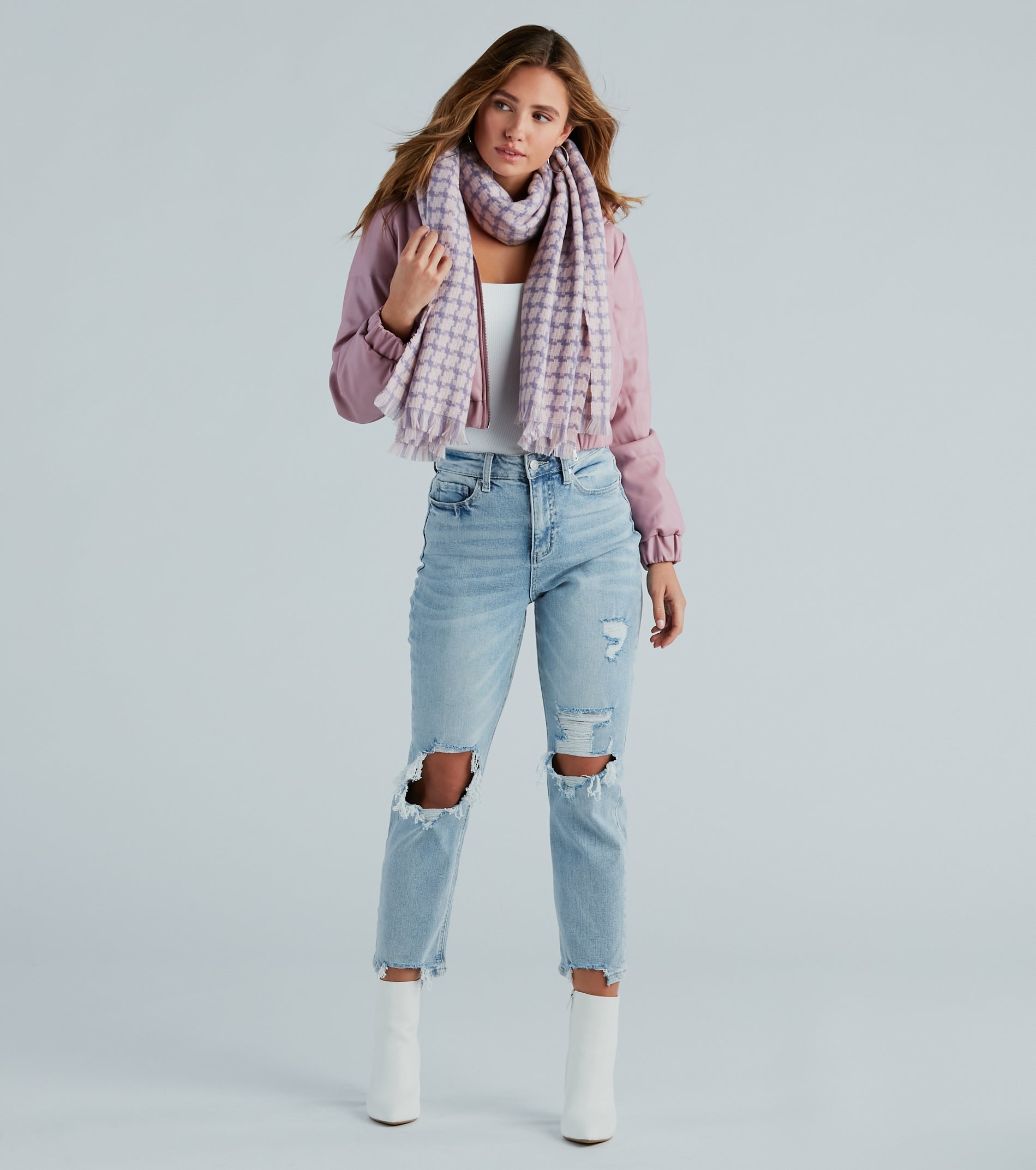 This bright and stylish cozy knit scarf is the perfect light accessory for any outfit. Crafted with a lightweight knit material with a checkered pattern. this scarf adds a fresh splash of color and texture. Complete the look in a trendy for running errands!