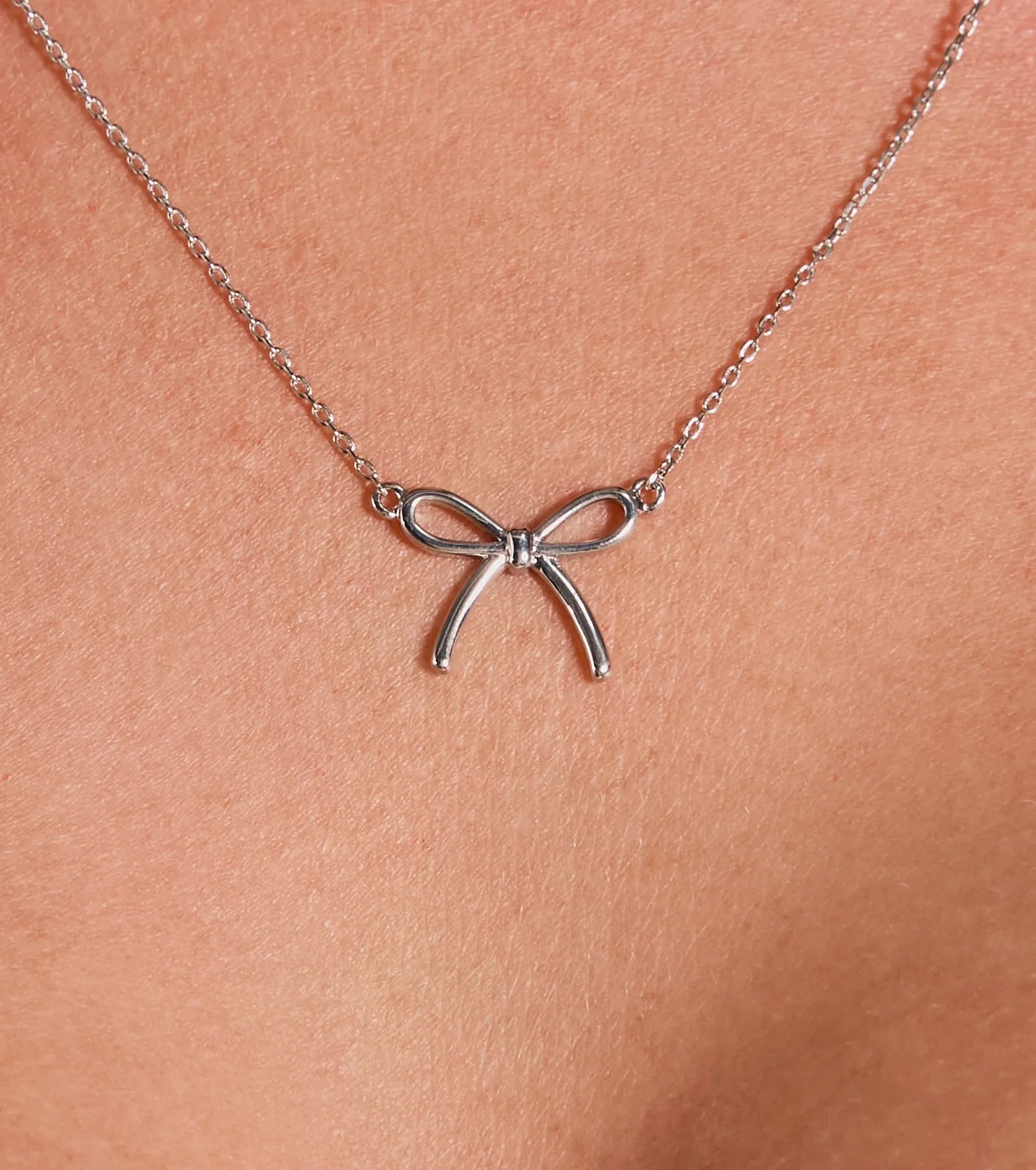 Create a pretty look by styling your everyday ‘fit with this adorable bow charm necklace! It features a dainty chain-link design accented with a delicate small bow charm. Offers an adjustable fit with a lobster clasp closure. Pair with?.