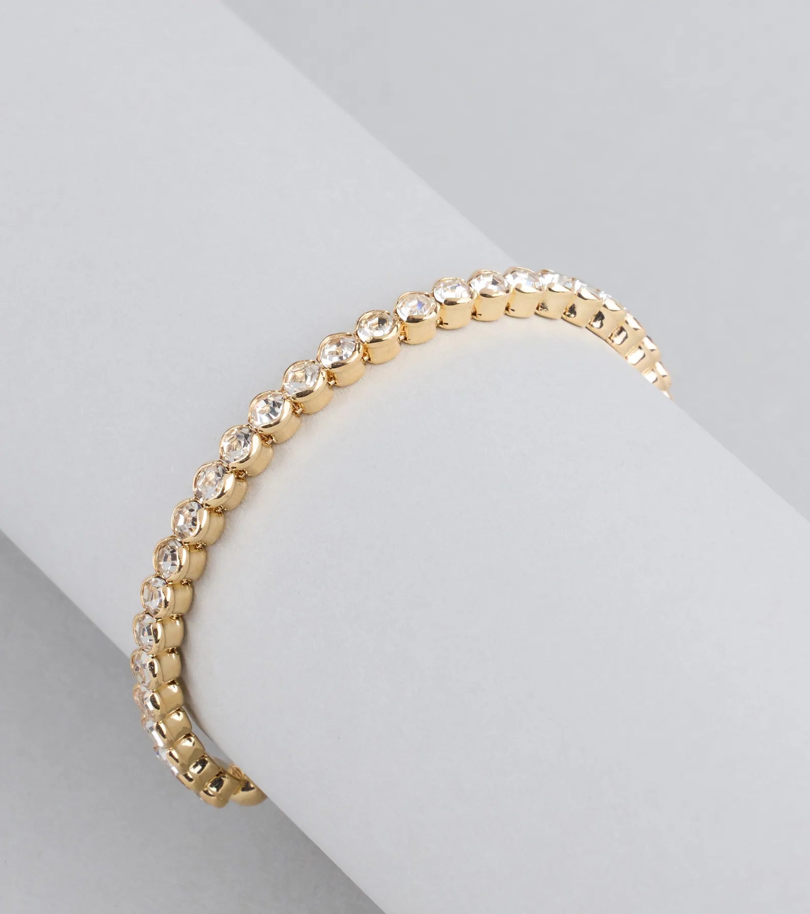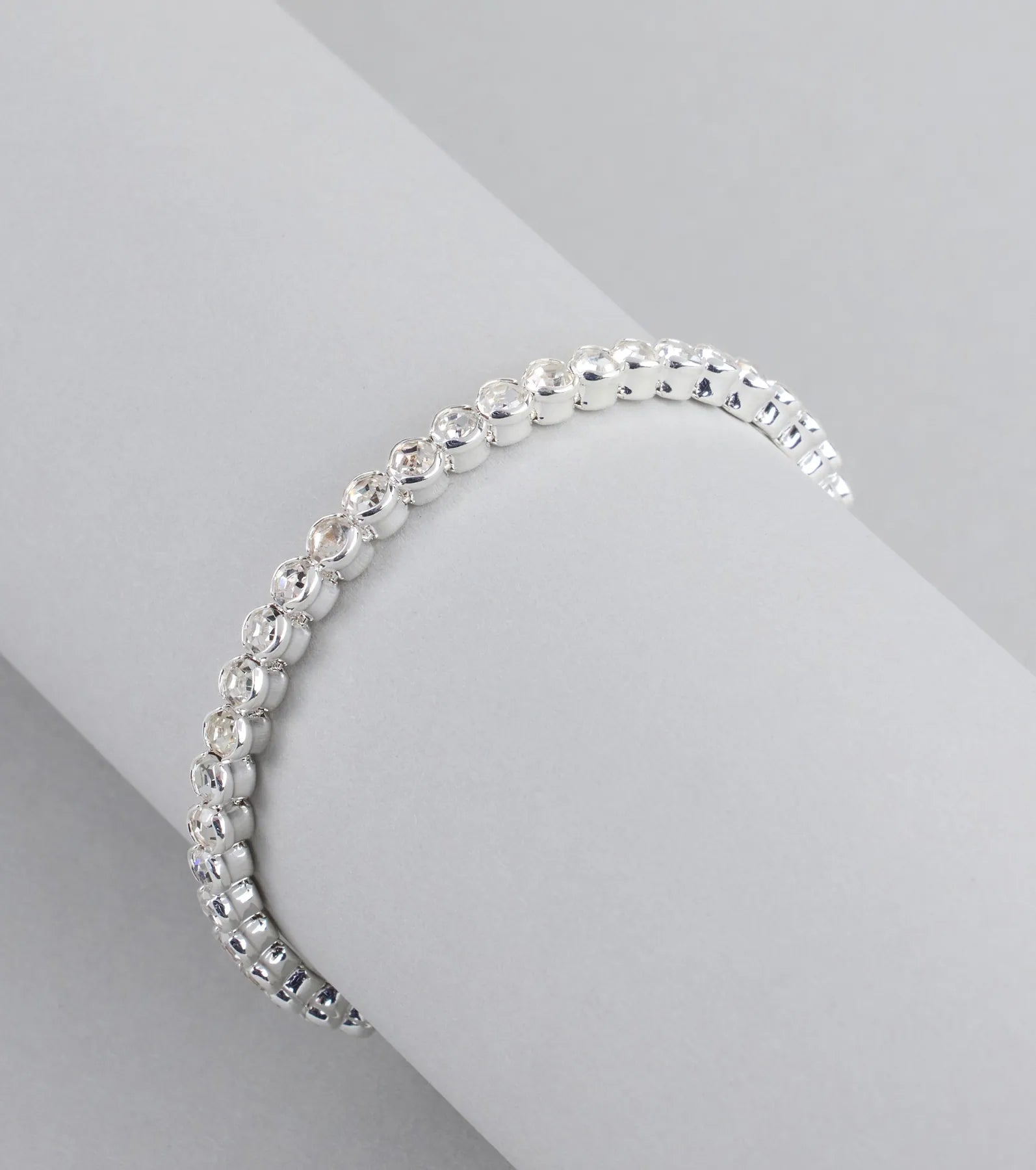 Add that pretty shine to your looks with this flexible memory wire bracelet featuring a single row of sparkling rhinestone embellishments.