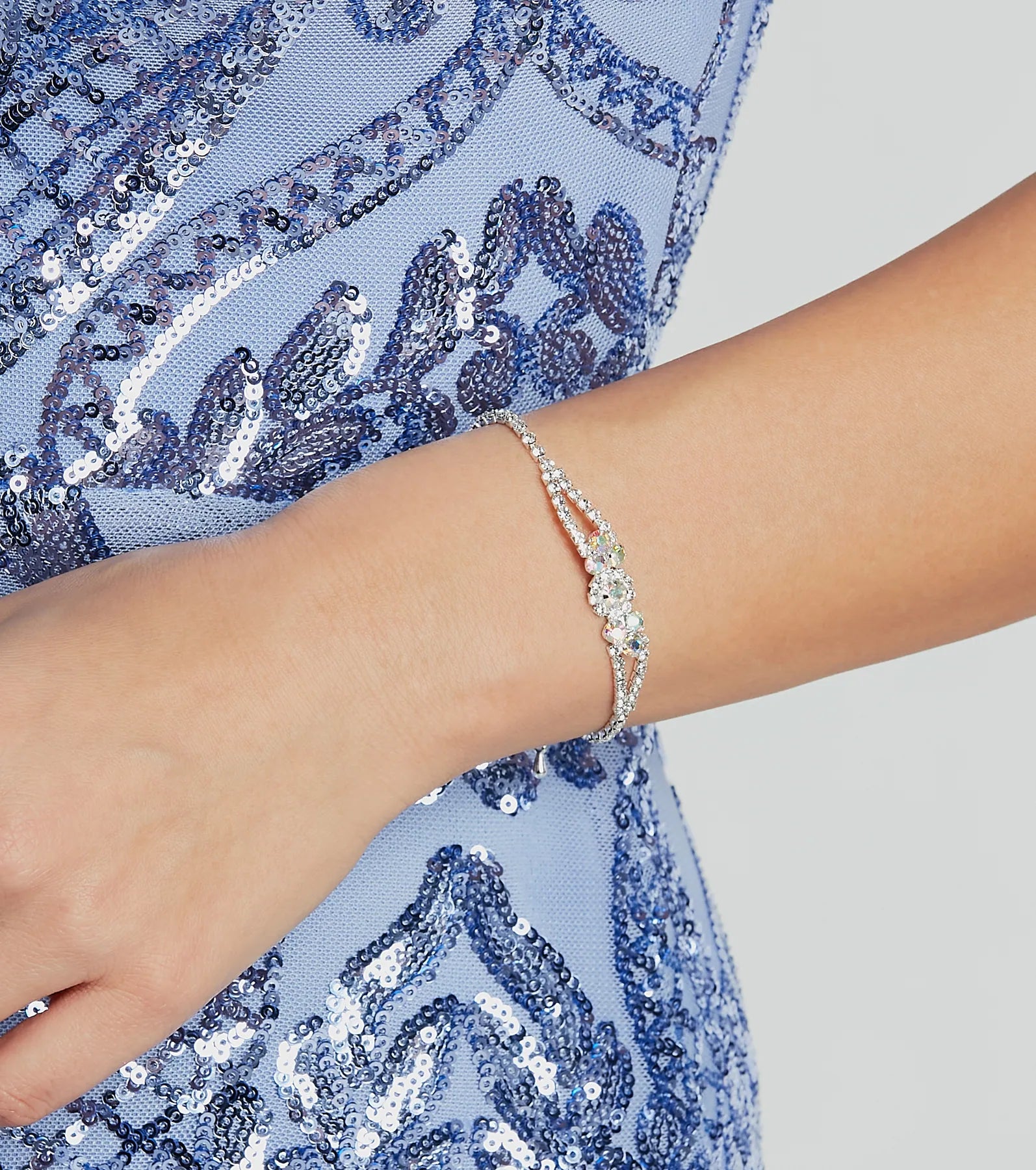 - Dainty bracelet. matching iridescent round rhinestones and small rhinestones