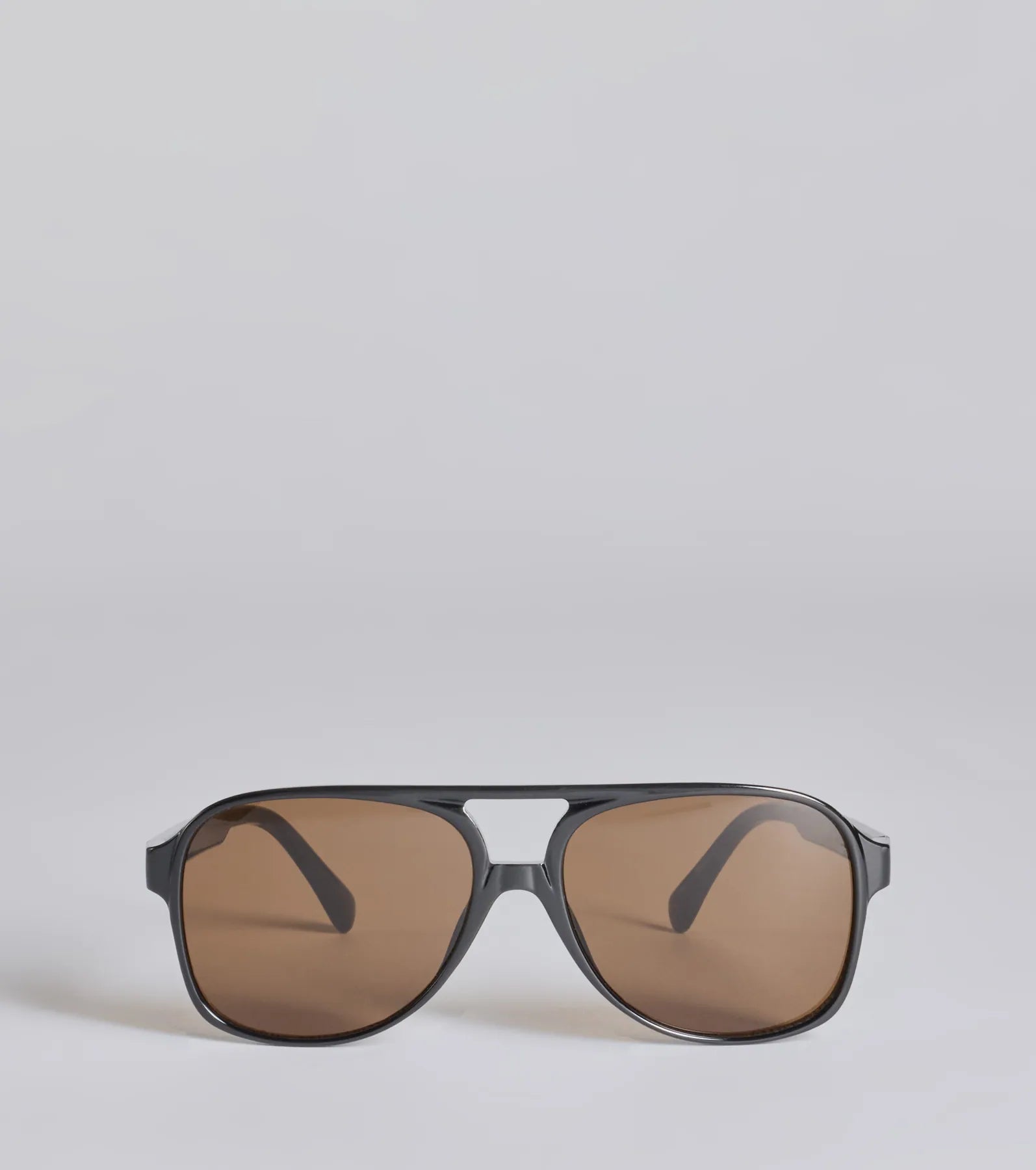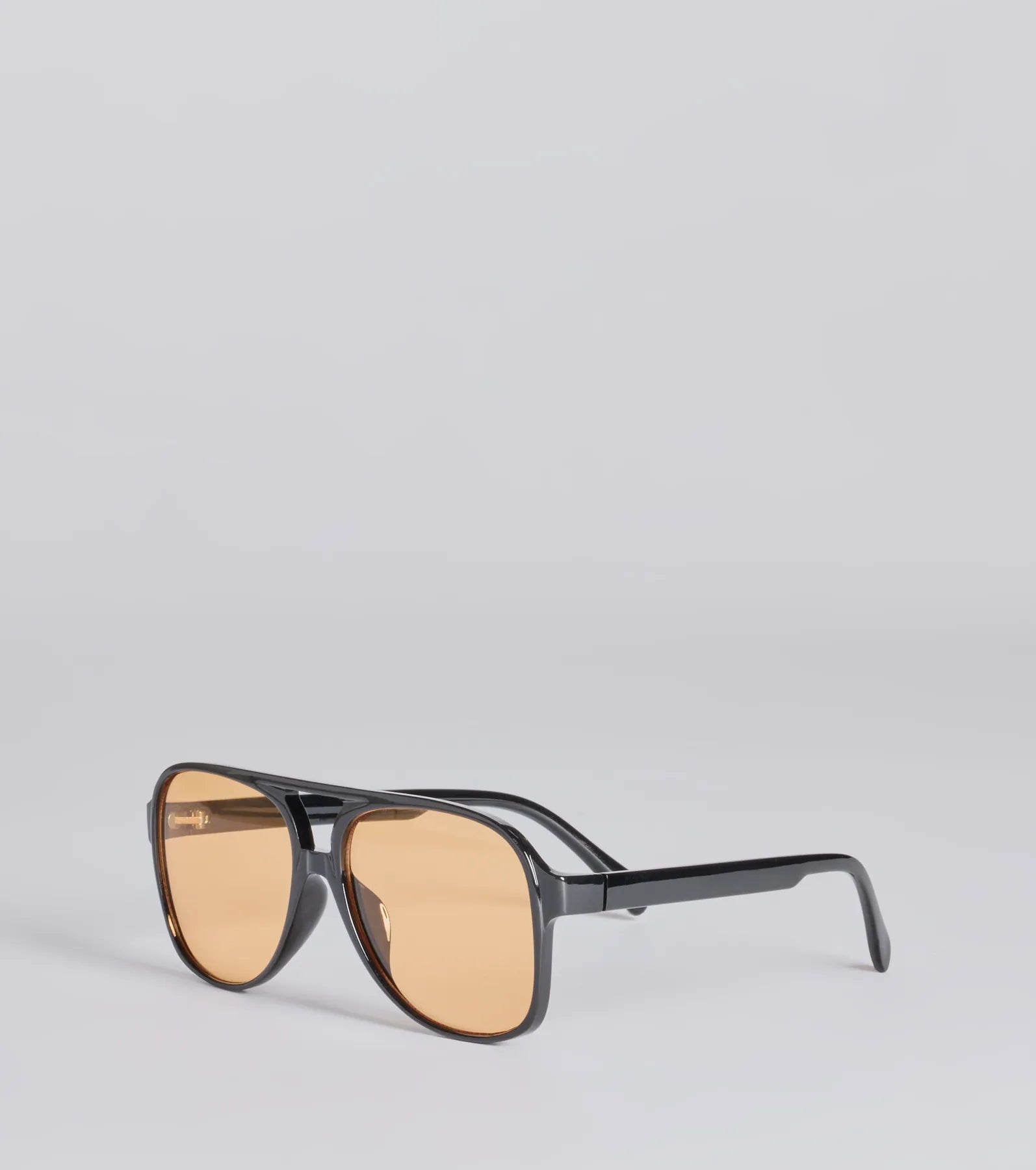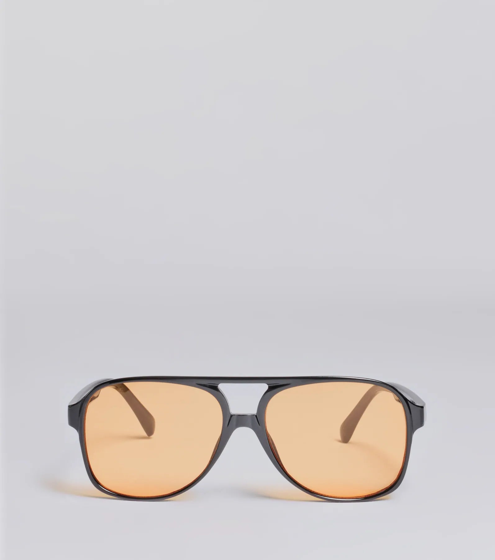 Retro and cool. these aviator sunglasses feature a flat top. tinted lenses with 100% UV protection. and nose supports. Perfect for everyday wear.