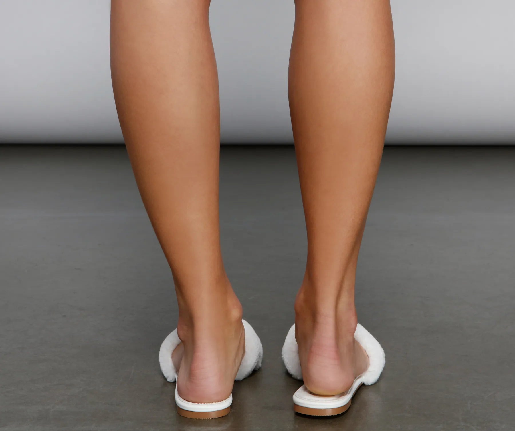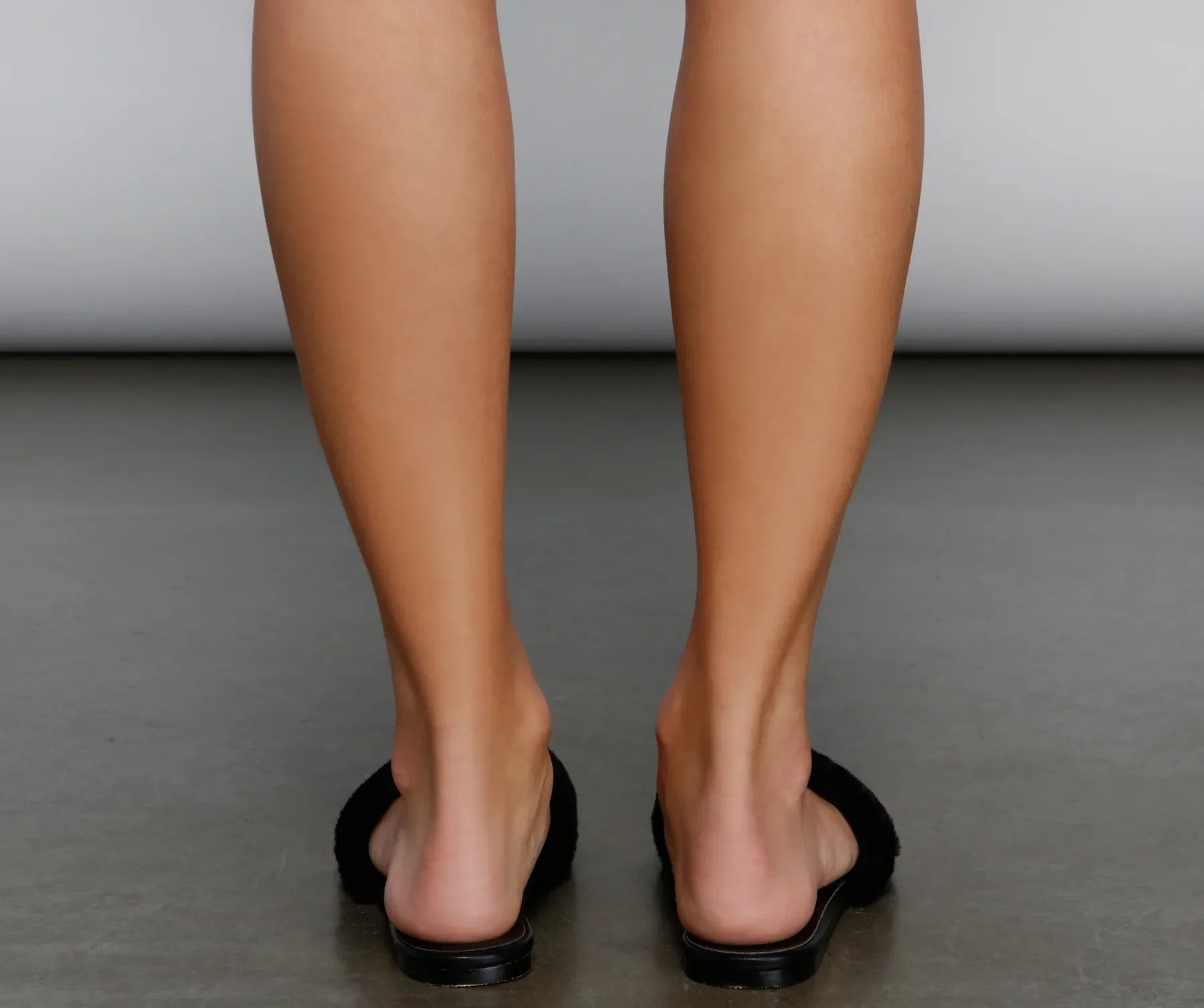 Take a shot and add a little glam to your look with this pair of slide sandals! They feature a fluffy strap. an open toe. and a Tequila Girl rhinestone accent. Wear them with jeans and a crop top for Happy hour!