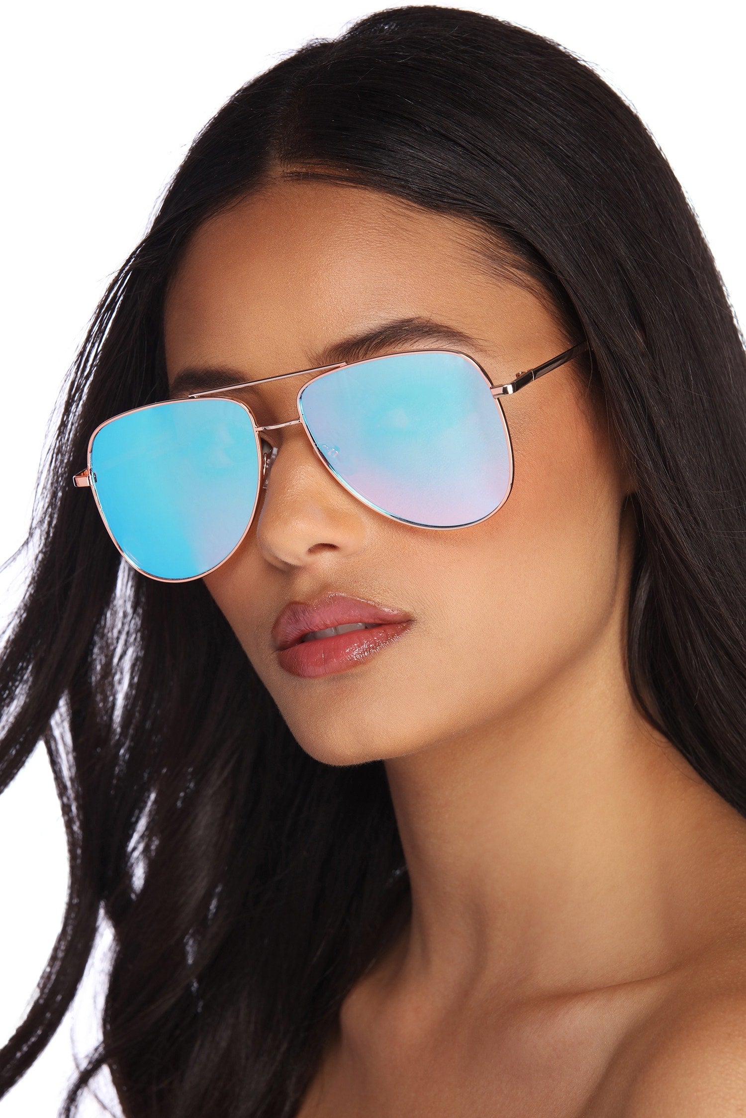 You’ll clearly be on trend in these shimmering sunnies! The sunglasses feature a thin silver metal frame adorned with a rhinestone trim with clear lenses that offer UV protection.