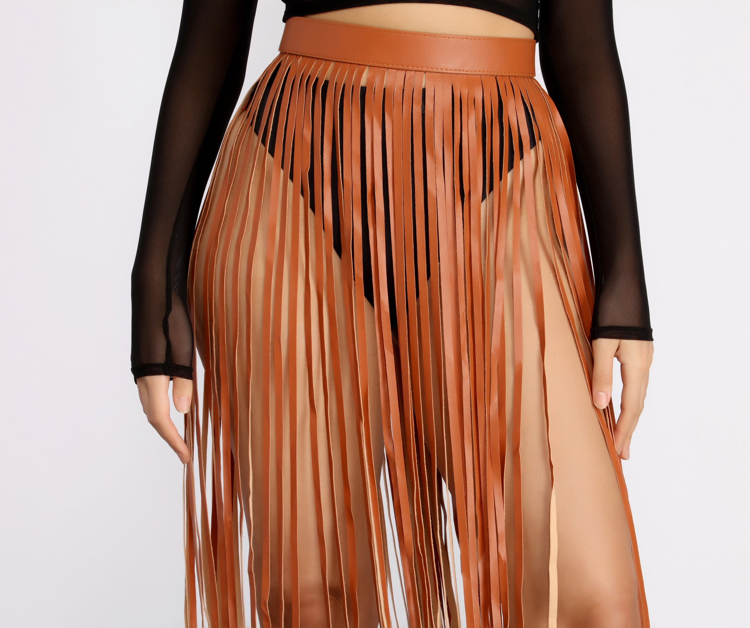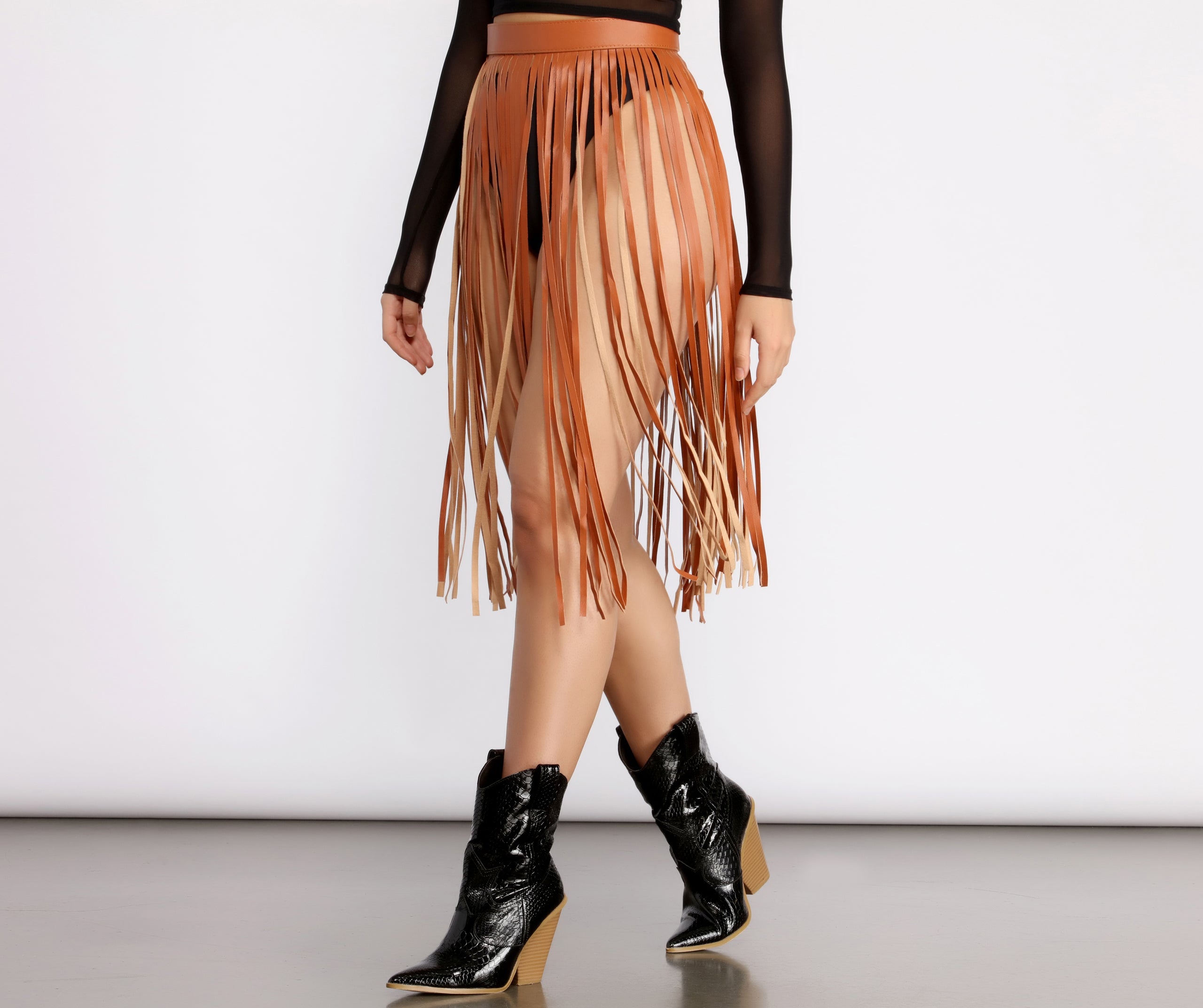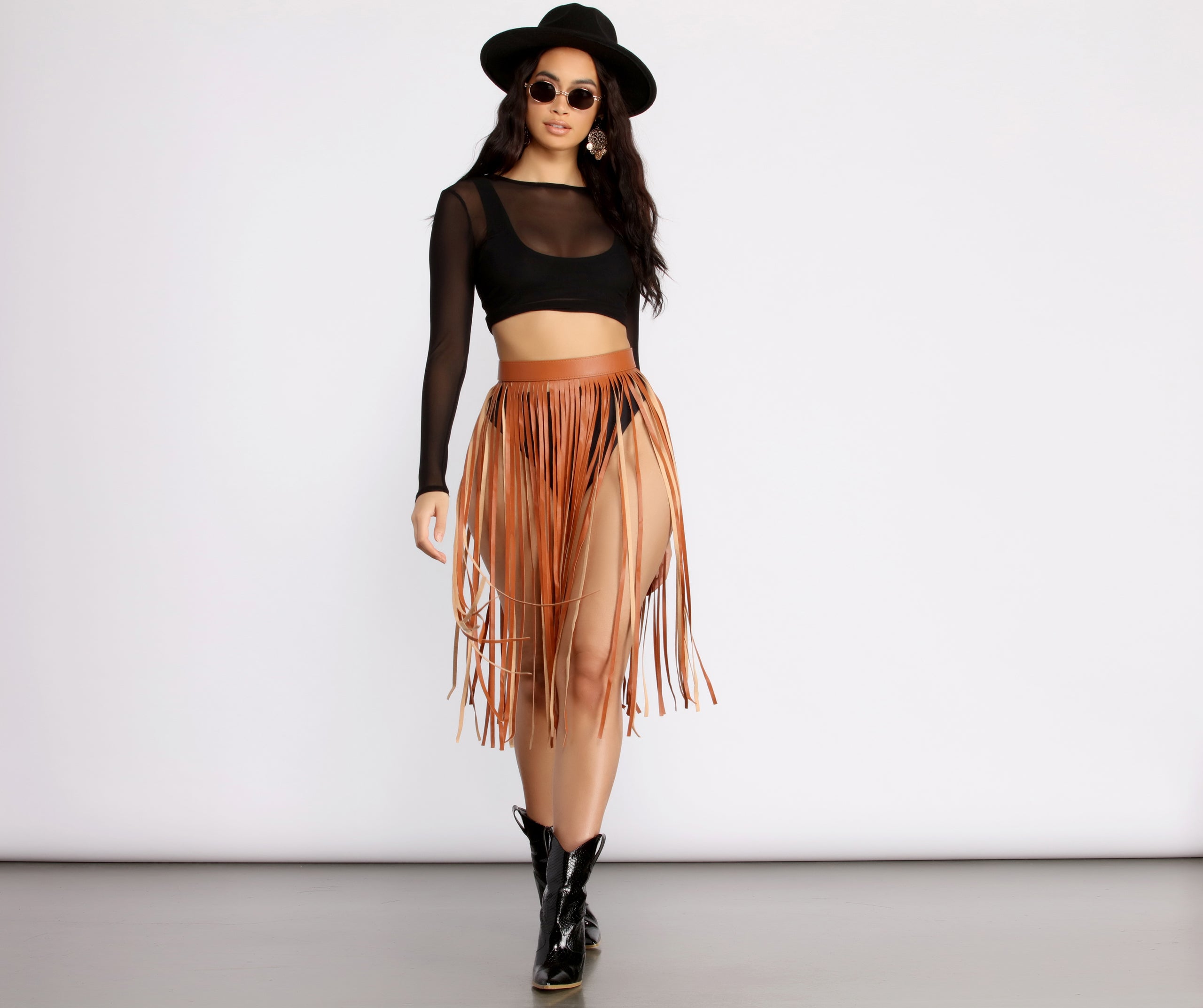 Baby rock it out in fringe! We are obsessed with fringe belts for this festival szn! Style with high waist shorts. or a one piece if ya feelin’ edgy.
