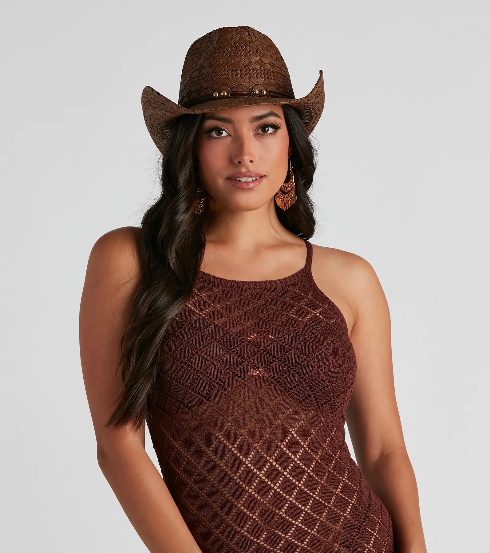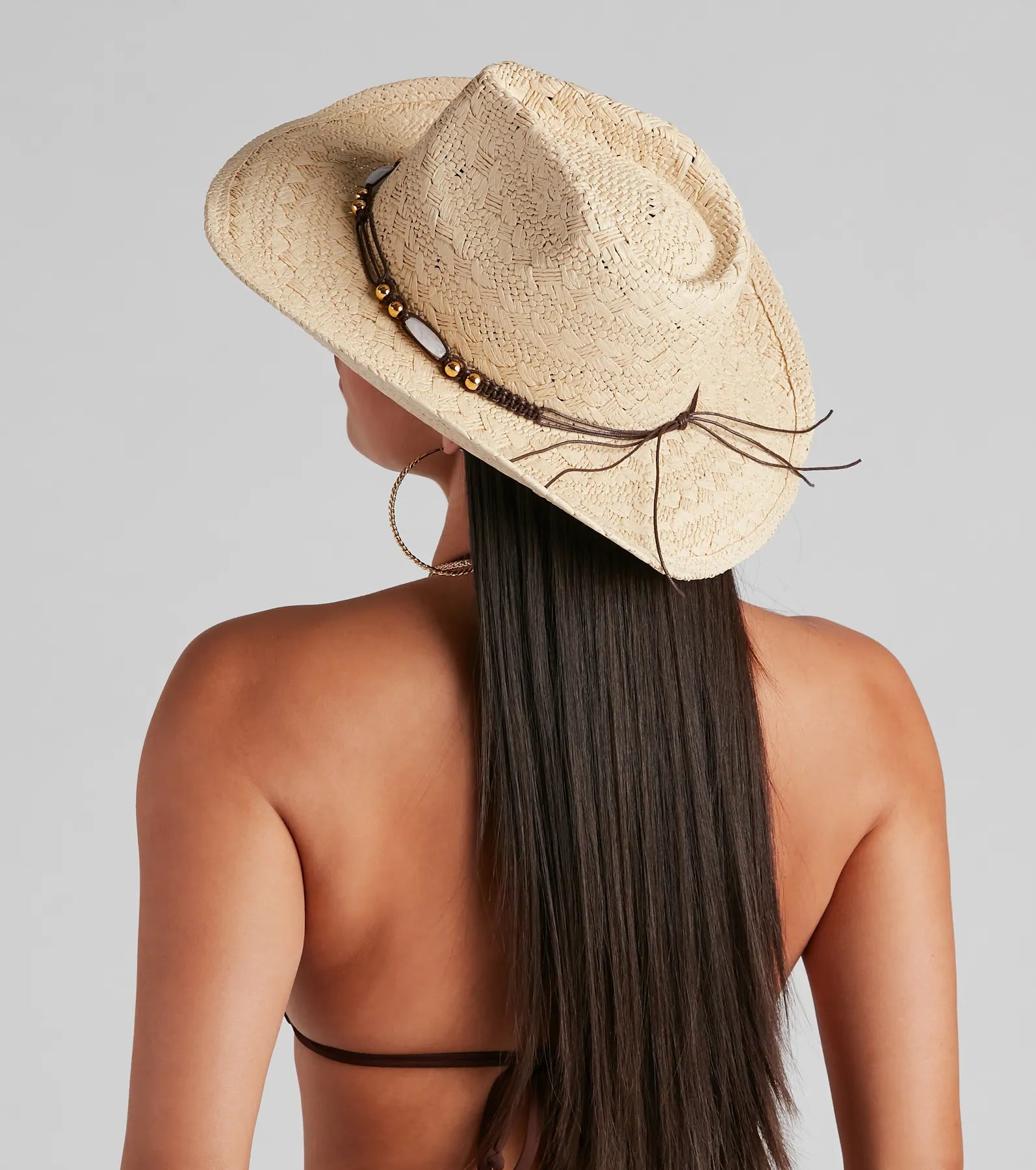 Back in the saddle again looking so country-chic! This straw cowboy hat is the perfect finishing touch to your music . It features a classic curved brim and a unique beaded string with a knot-tie accent.