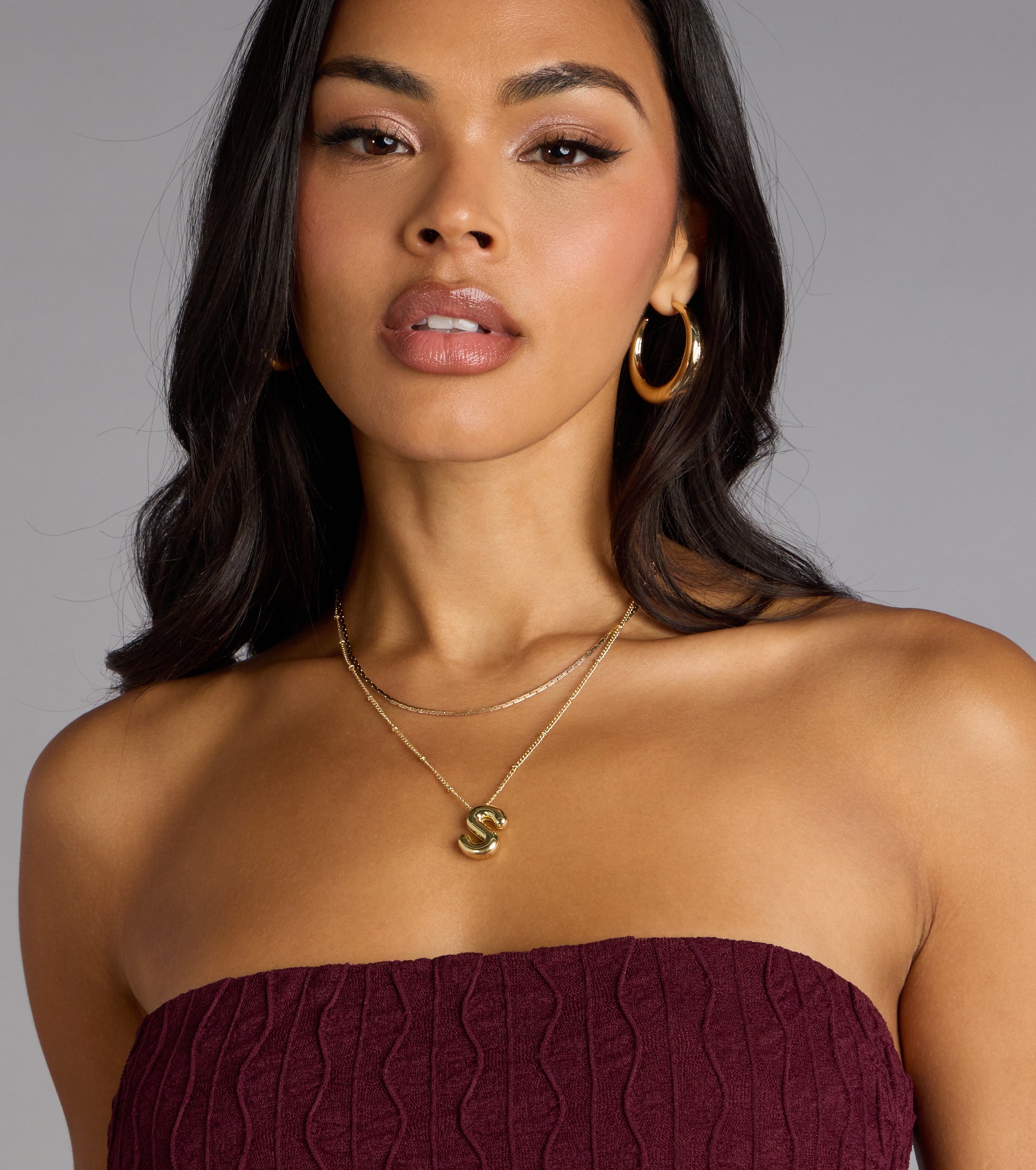 All about the statement. This bubble letter charm chain necklace adds playful shine and gives your fit that extra edge without even trying.