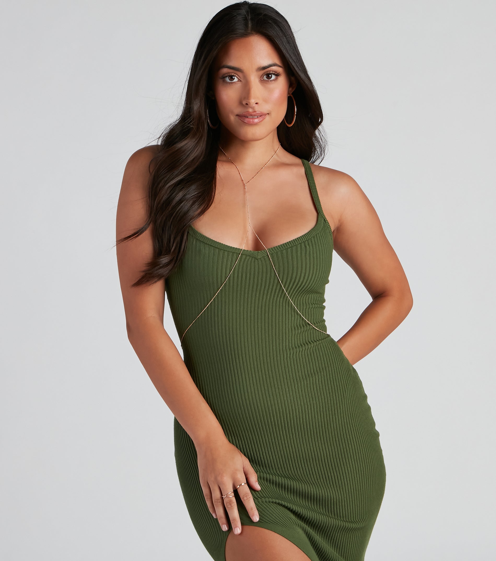 Create a simply chic look with this body chain featuring a high neck design on a dainty chain link and a lobster clasp closure. Style with a sultry for a Vegas pool party.