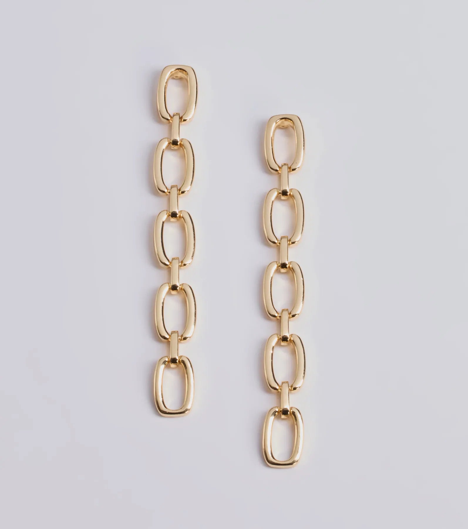 Give your outfit a sleek accent with these chain-link duster earrings. Style the earrings with a sleek moto jacket.