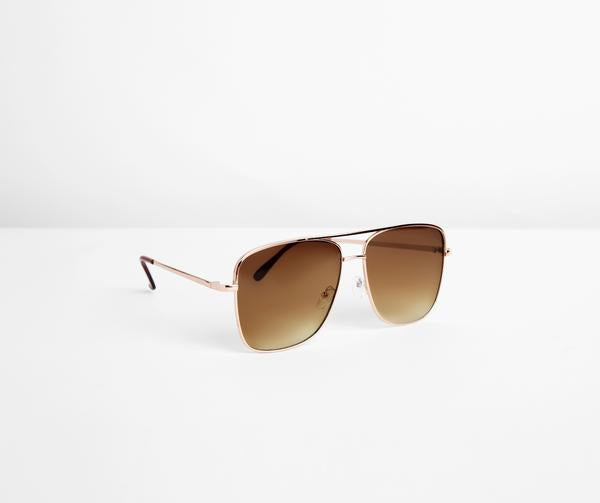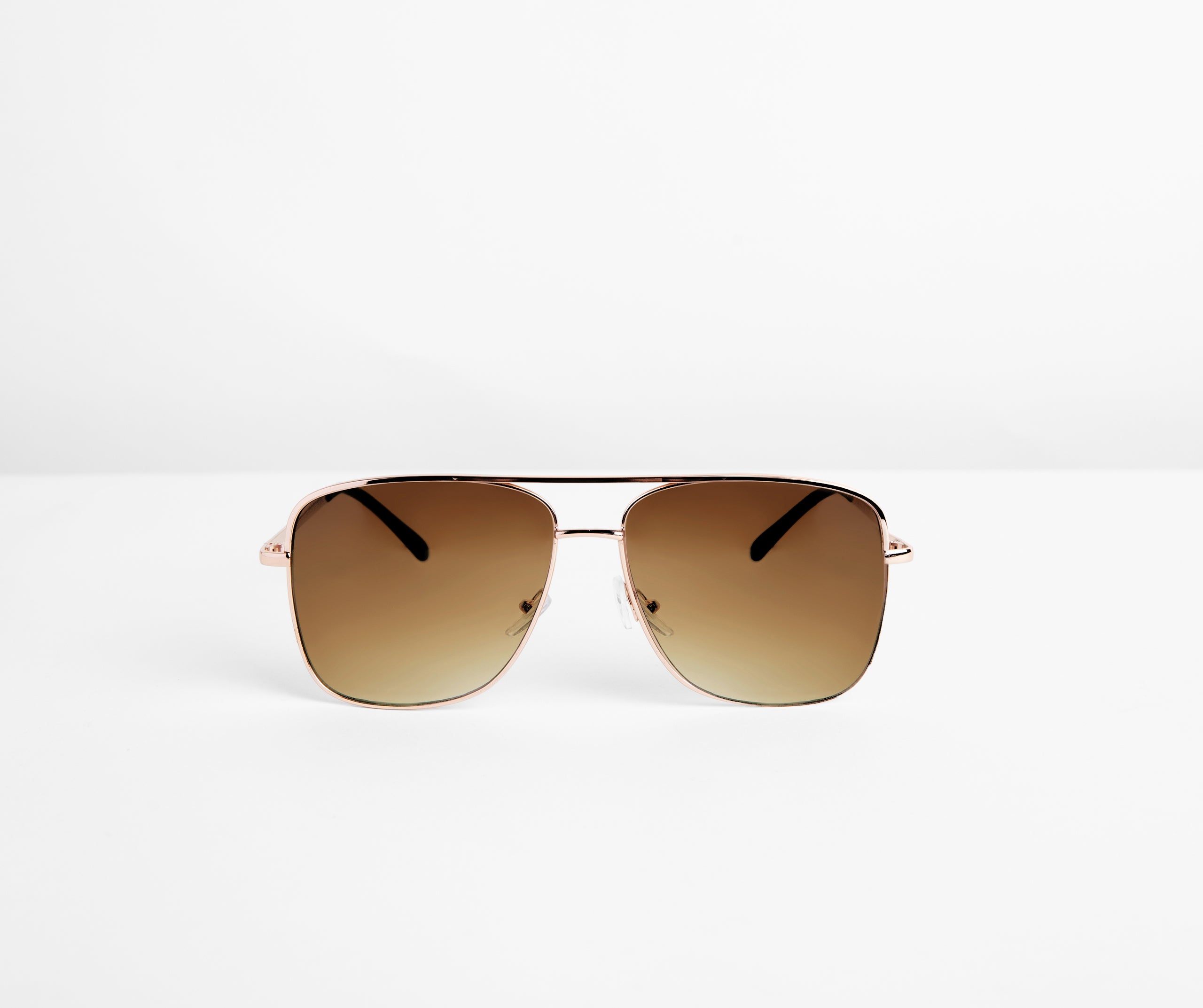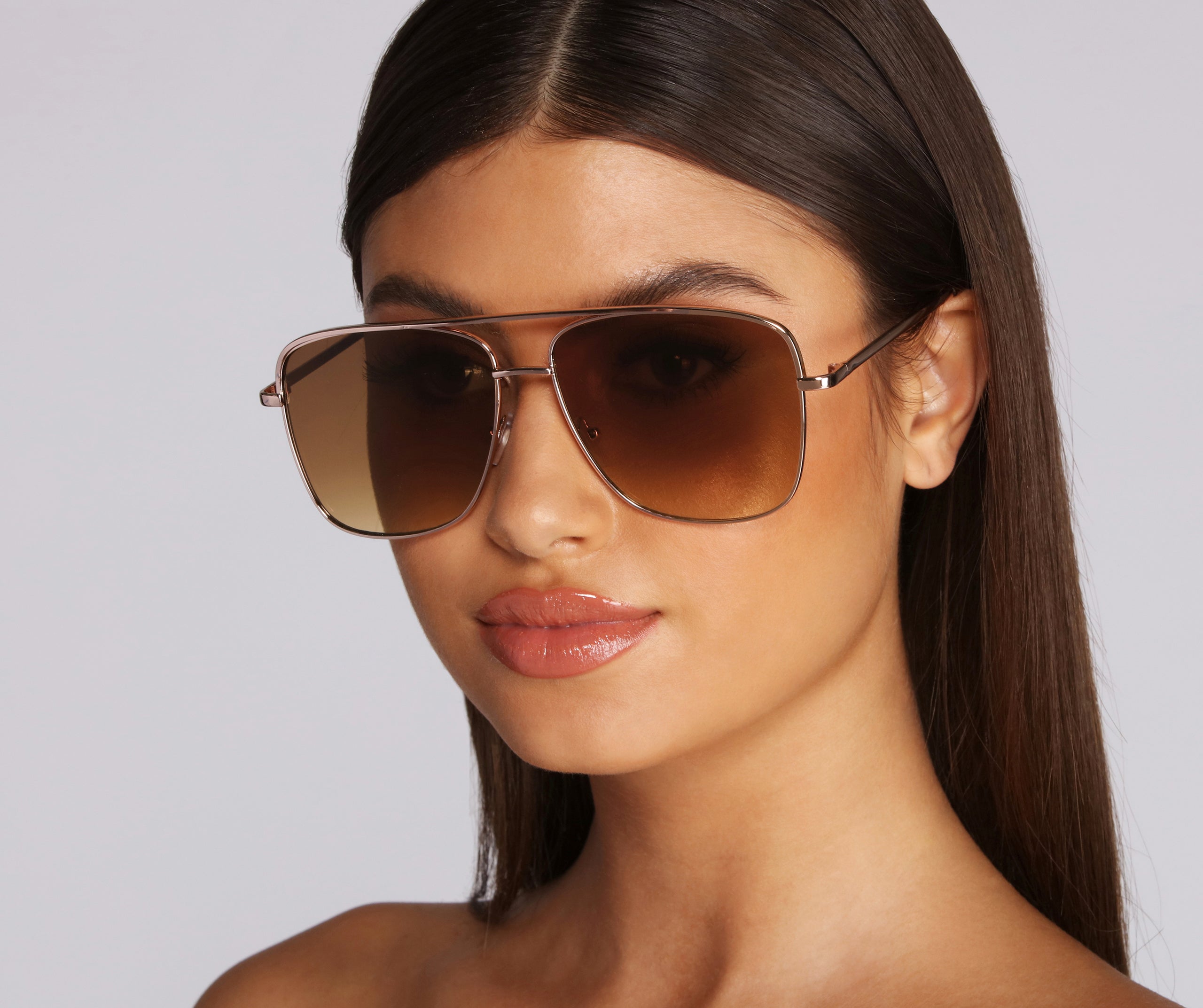 Look sleek and stylin’ for this summer season in these aviators. They feature an aviator design with a brow bar and frame and gradient tinted lenses.