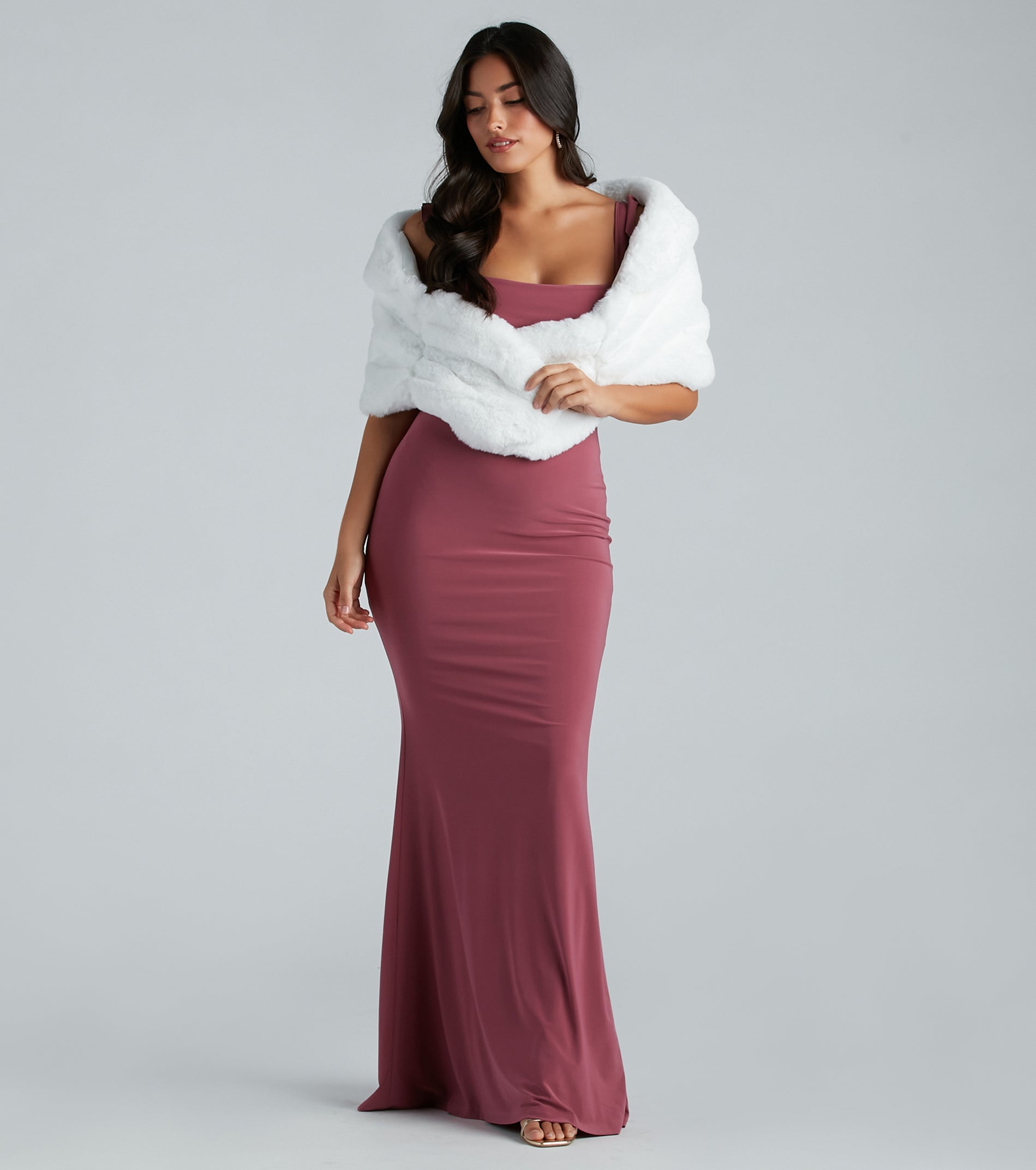 Elevate your formal outfits with this faux fur shawl wrap that is so luxe! Featuring an over-the-shoulder draped design with a collar. an elastic cinched design near a front hook and eye closure. and an ultra-soft faux fur fabric with a smooth satin lining. this wrap will step up the glam factor. For your next special occasion. layer this chic wrap over your formal dress and complete your look with a .