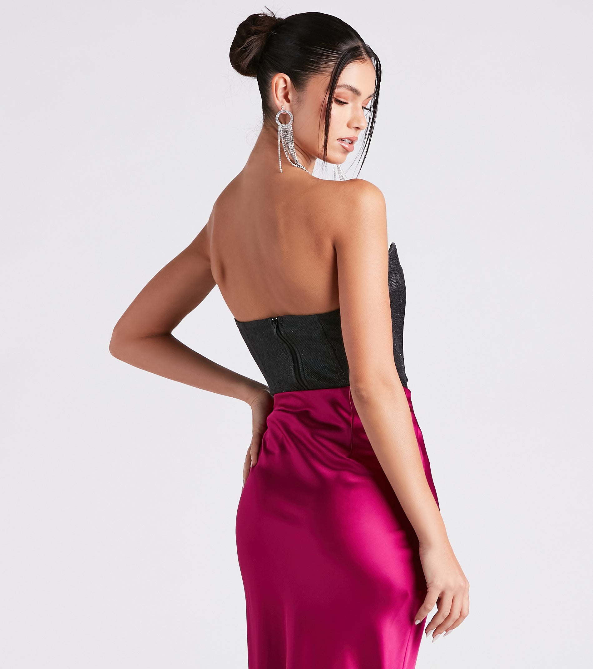 • Back zipper and hook-eye closure