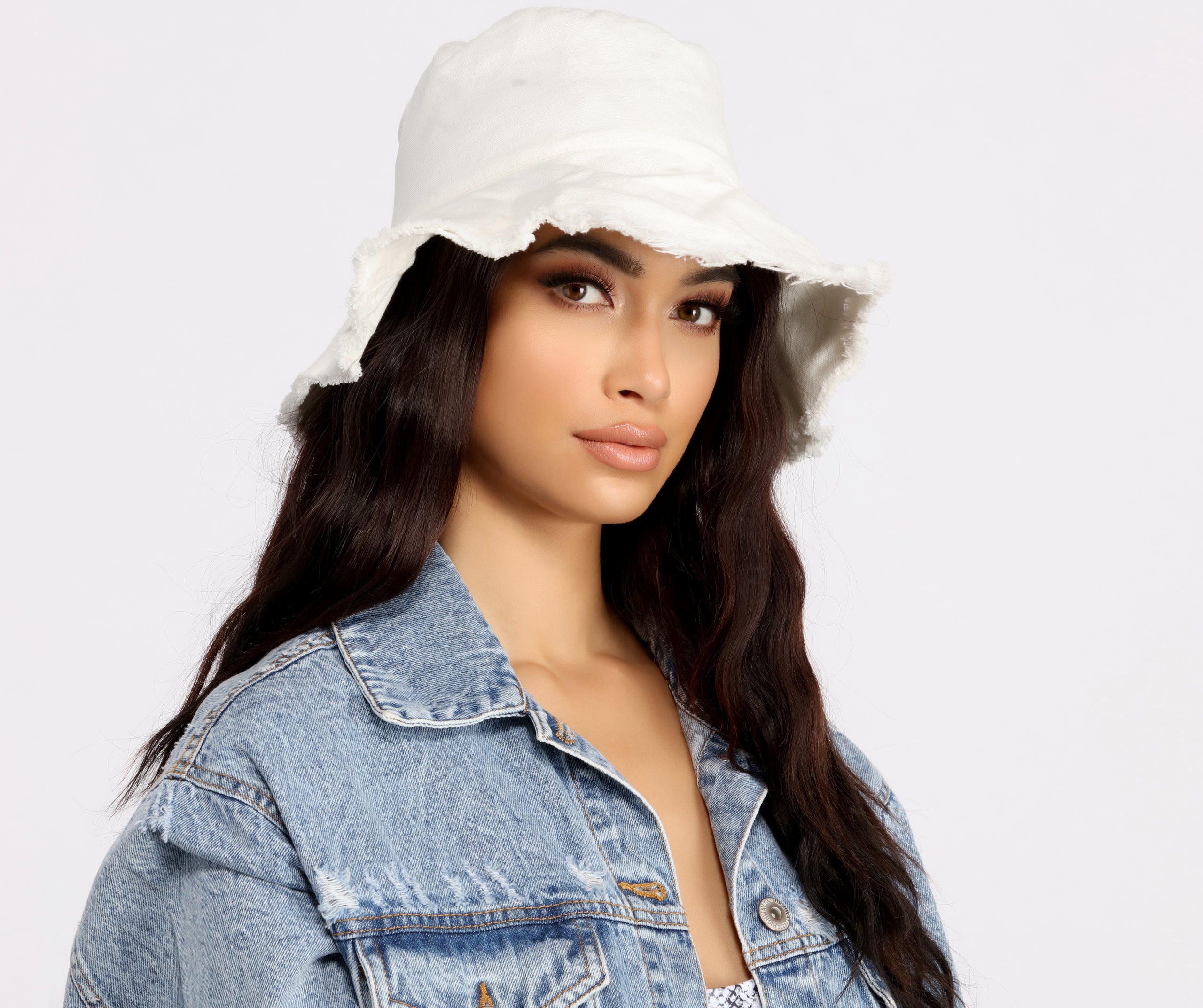 Lay out beach side with your towel. your swim suit. and your cutest bucket hat!?