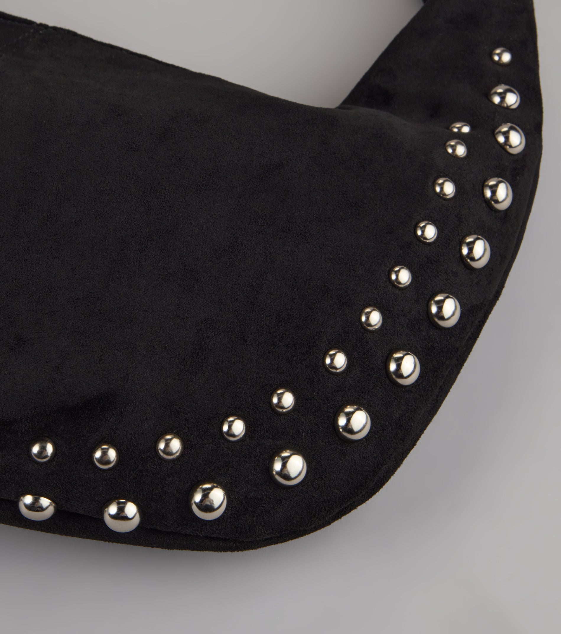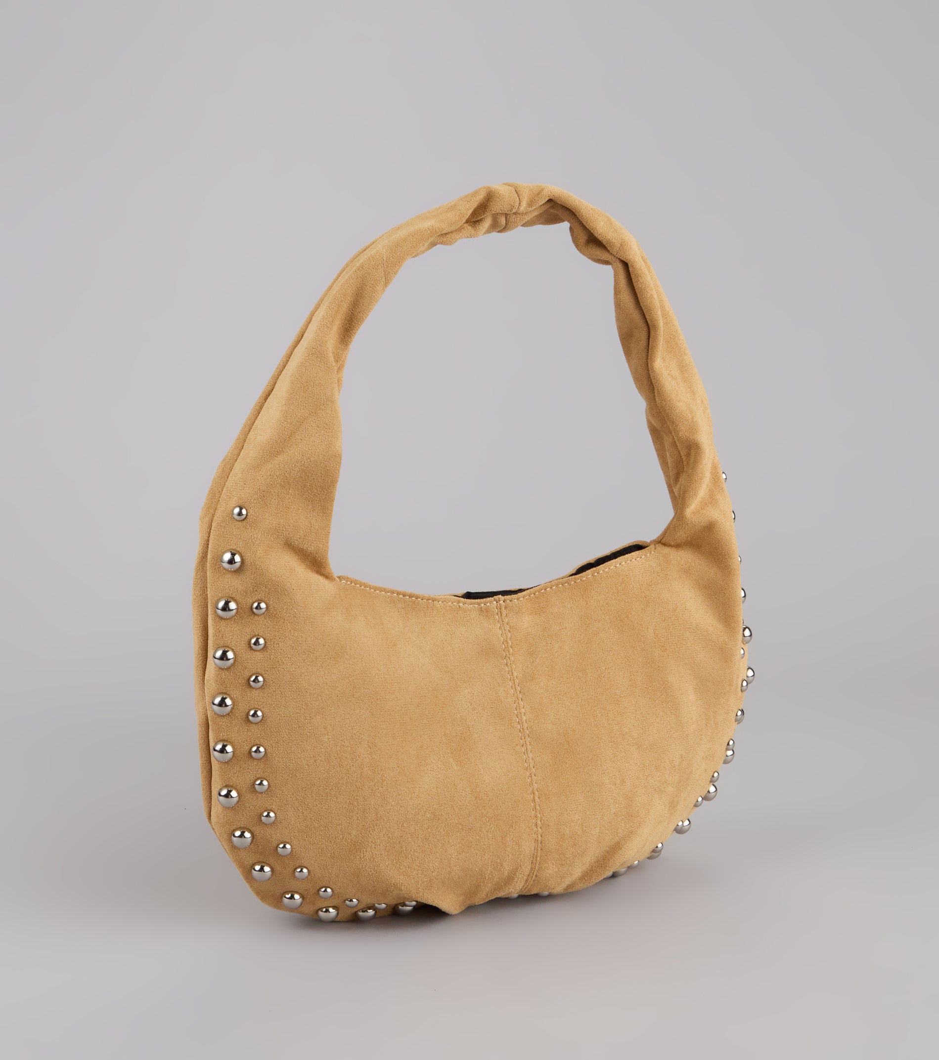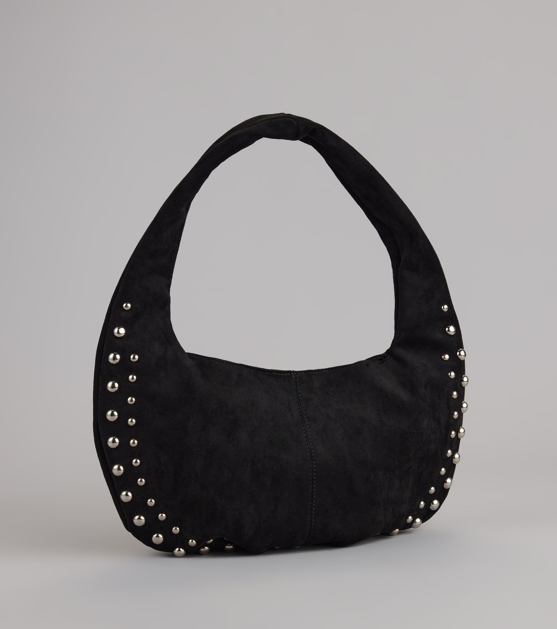The perfect complement to any outfit. This faux suede shoulder bag nails the vibe with bold stud accents and a slouchy shape that works from coffee run to nights out.