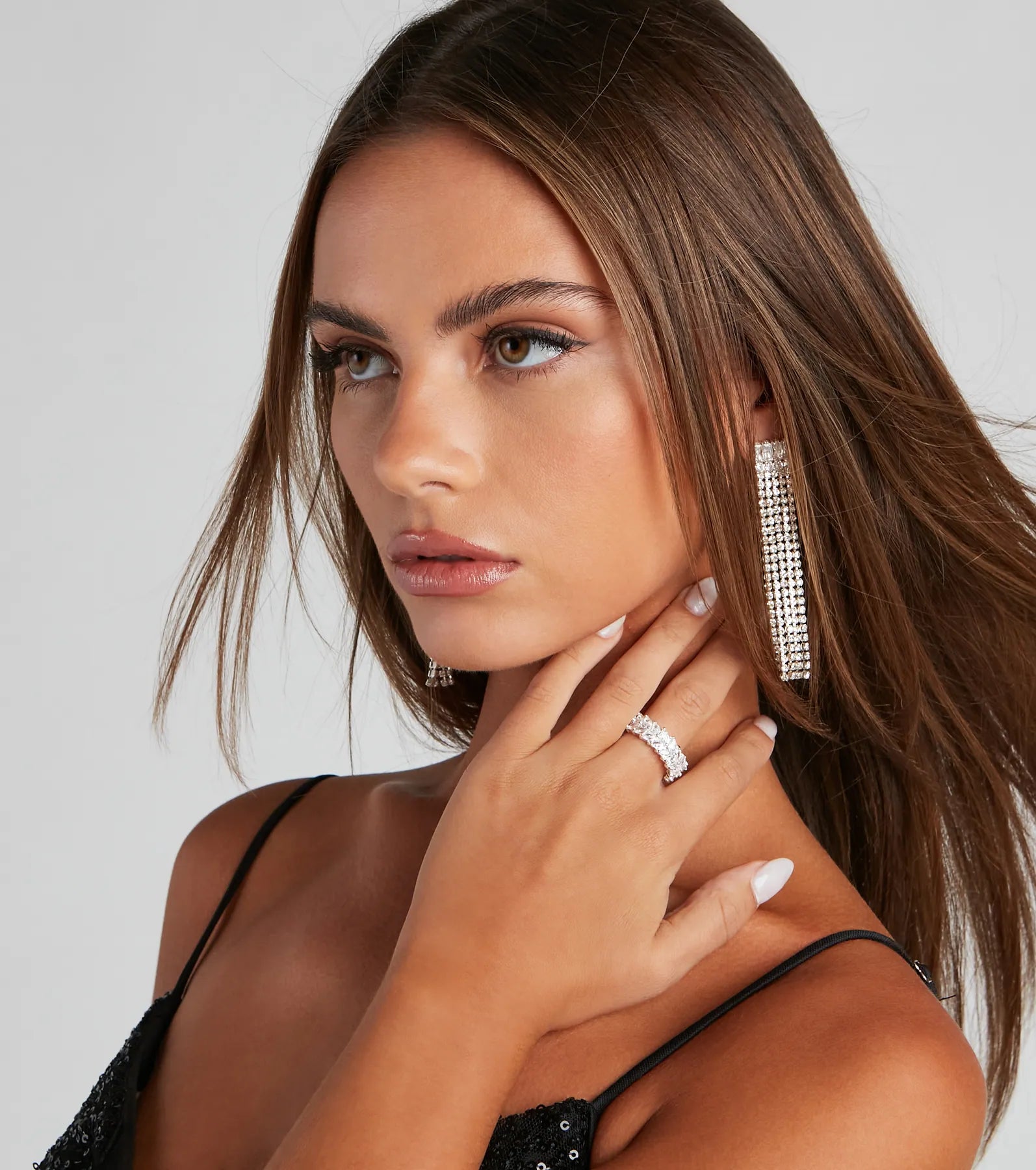 Step up the glamour with this stunning embellished statement ring. It features two rows of small leaf-shaped cubic zirconia stones. Style with a .