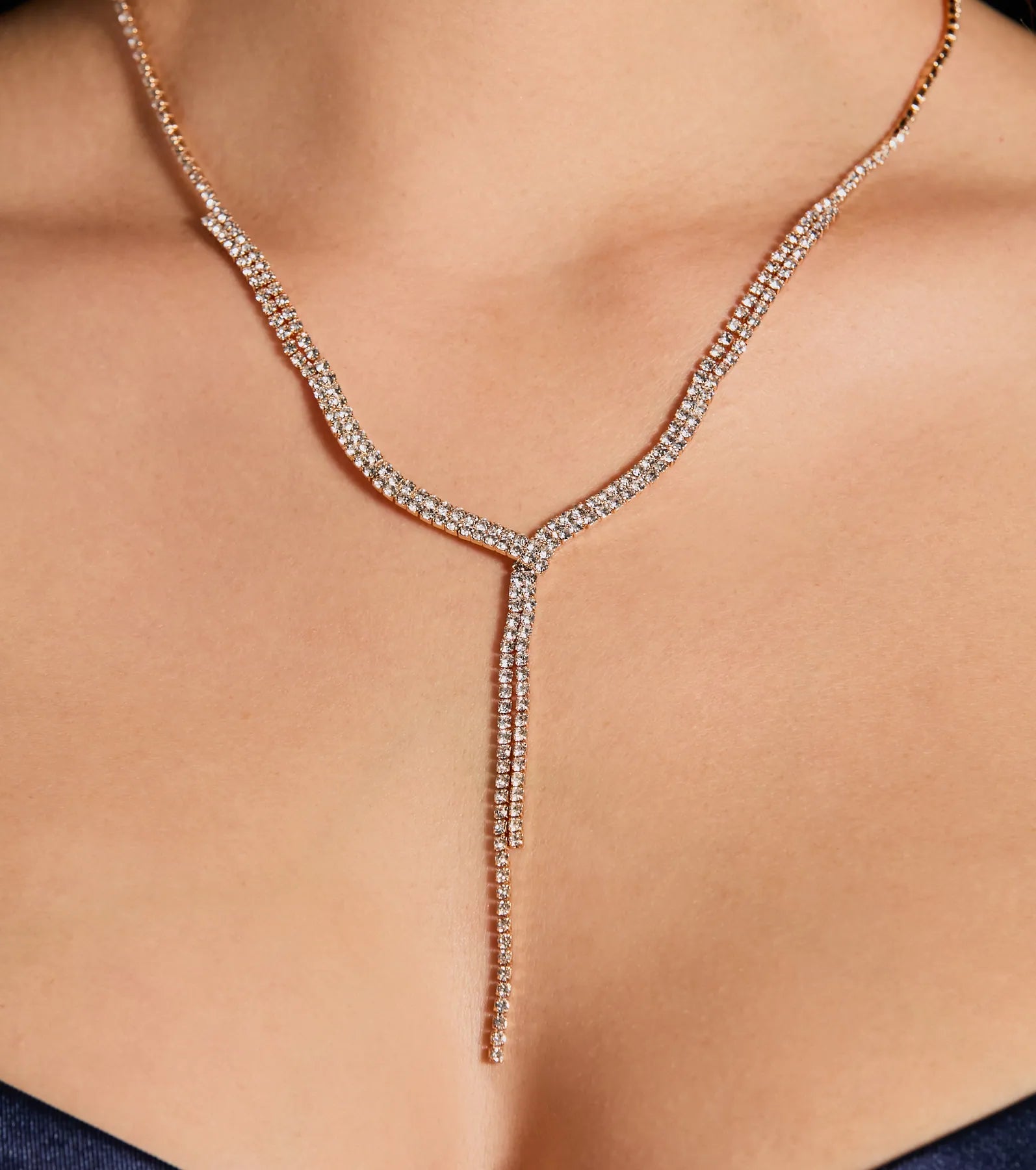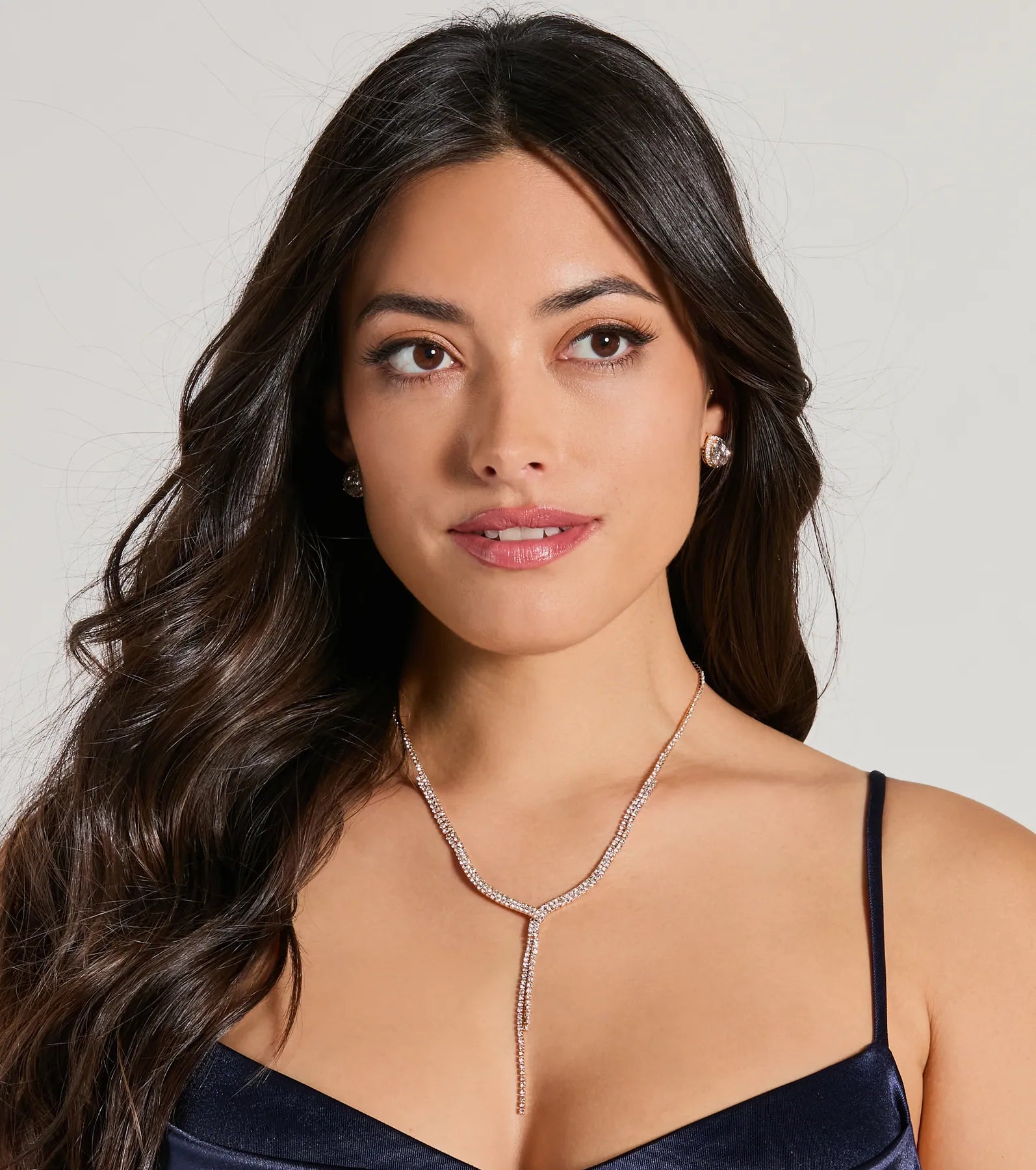 Adorn your look with this stylish rhinestone lariat necklace boasting a dainty and delicate design for a breathtaking look. Finish the look with for any soiree!
