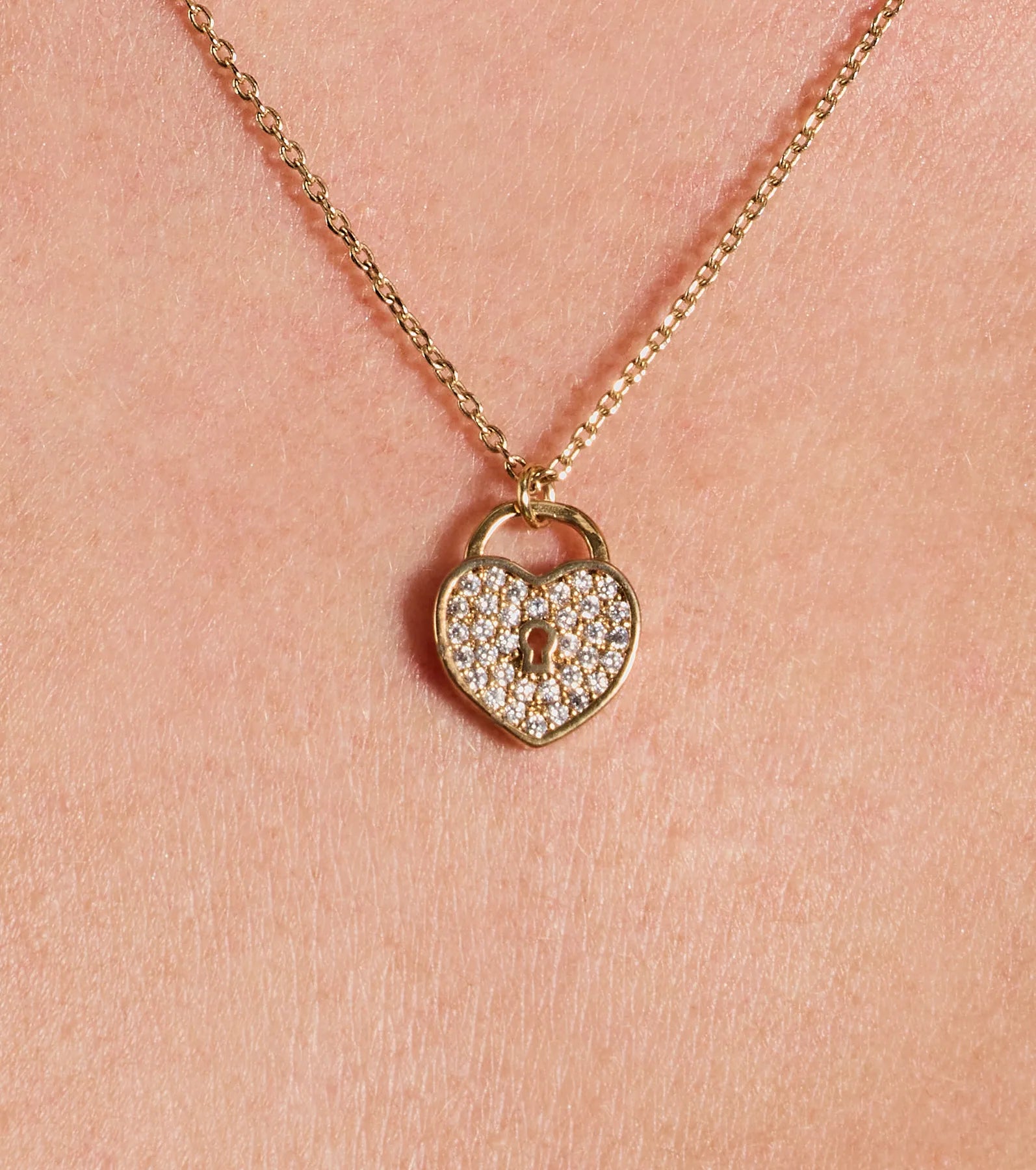 Everyone will want your style secrets accessorizing with this adorable charm necklace!?Designed with a dainty chain. it features a small heart locket charm at the center embellished with sparkling rhinestones. Pair with .
