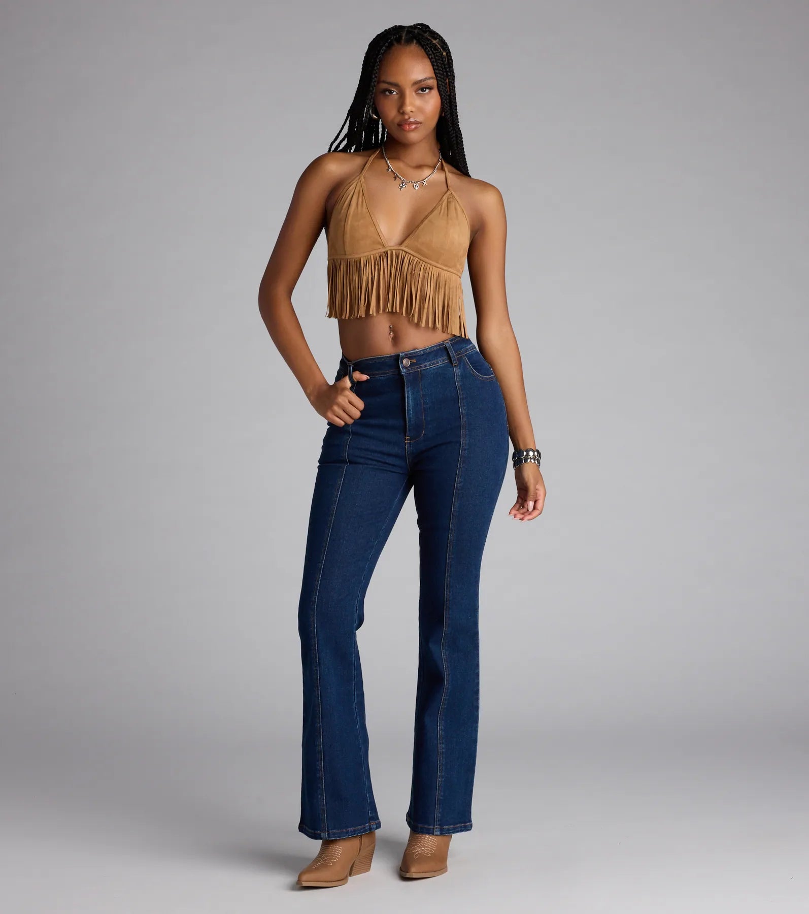 These mid-rise denim jeans said main character energy and meant it. With retro-inspired flare legs and star patch pockets. they’re made for summer fun. house parties. and showing off socials!