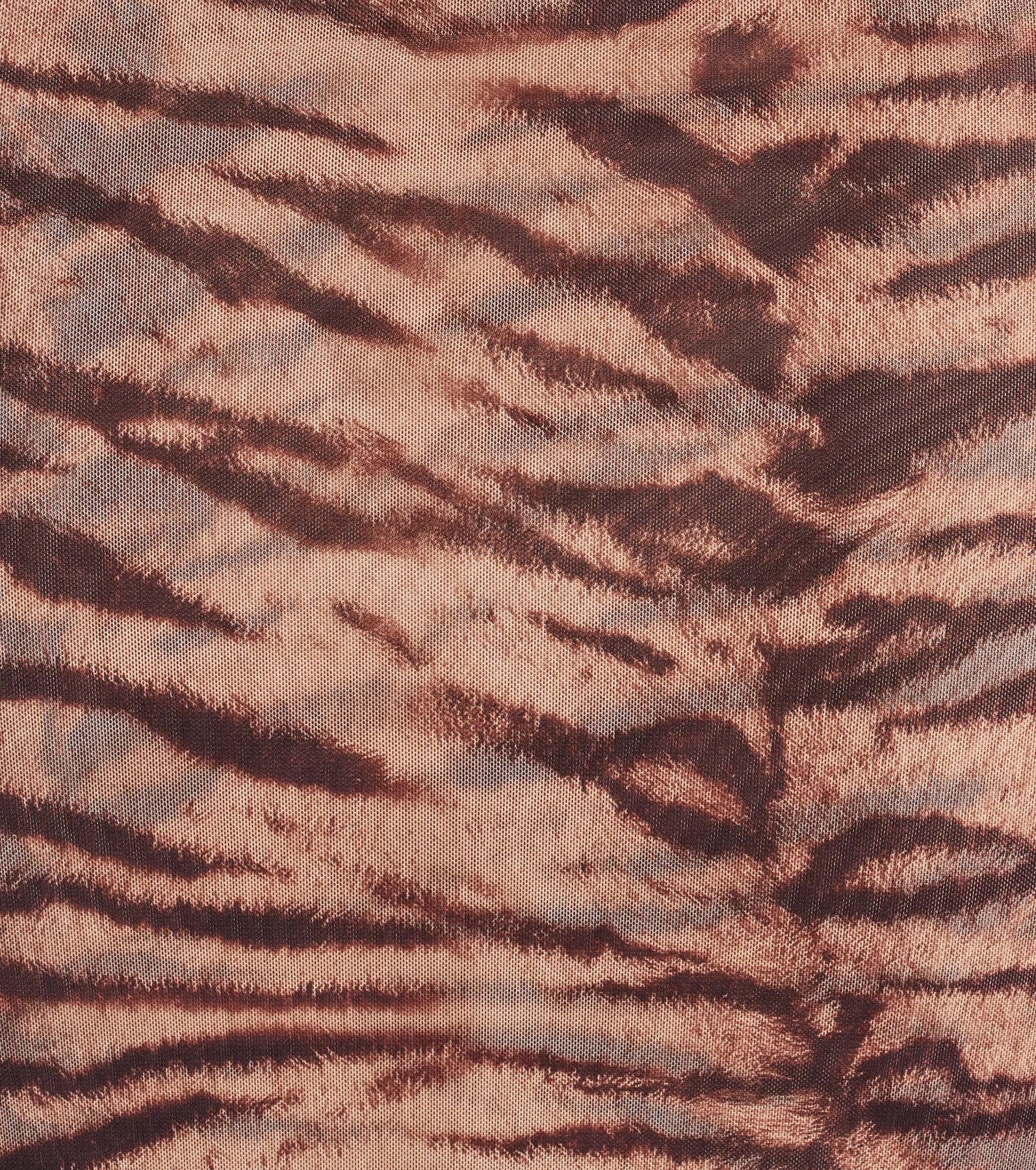 Serve sultry and sassy vibes in this curve-hugging midi dress made with lined mesh fabric with a bold zebra print pattern. It features a sleeveless cowl neckline. tie-back halter straps. an alluring open back. and a twisted lower back design with ruched detailing.