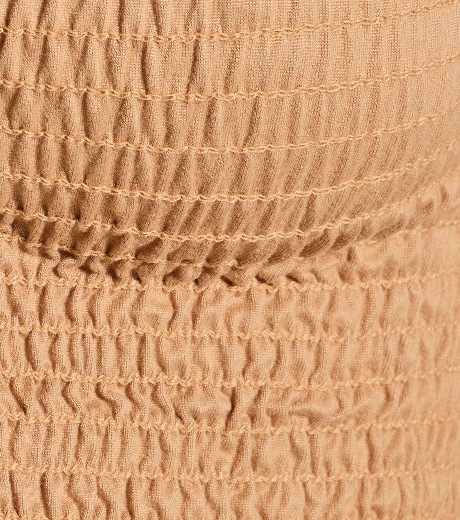 This off-the-shoulder crop top is as sweet as you! This stunning top features an off-the-shoulder neckline and short-sleeve cuffs for a flirty touch. The lace-up front adds a unique detail. while the cropped hem and stretchy smocked bodice provide a flattering fit. Complete the look in .