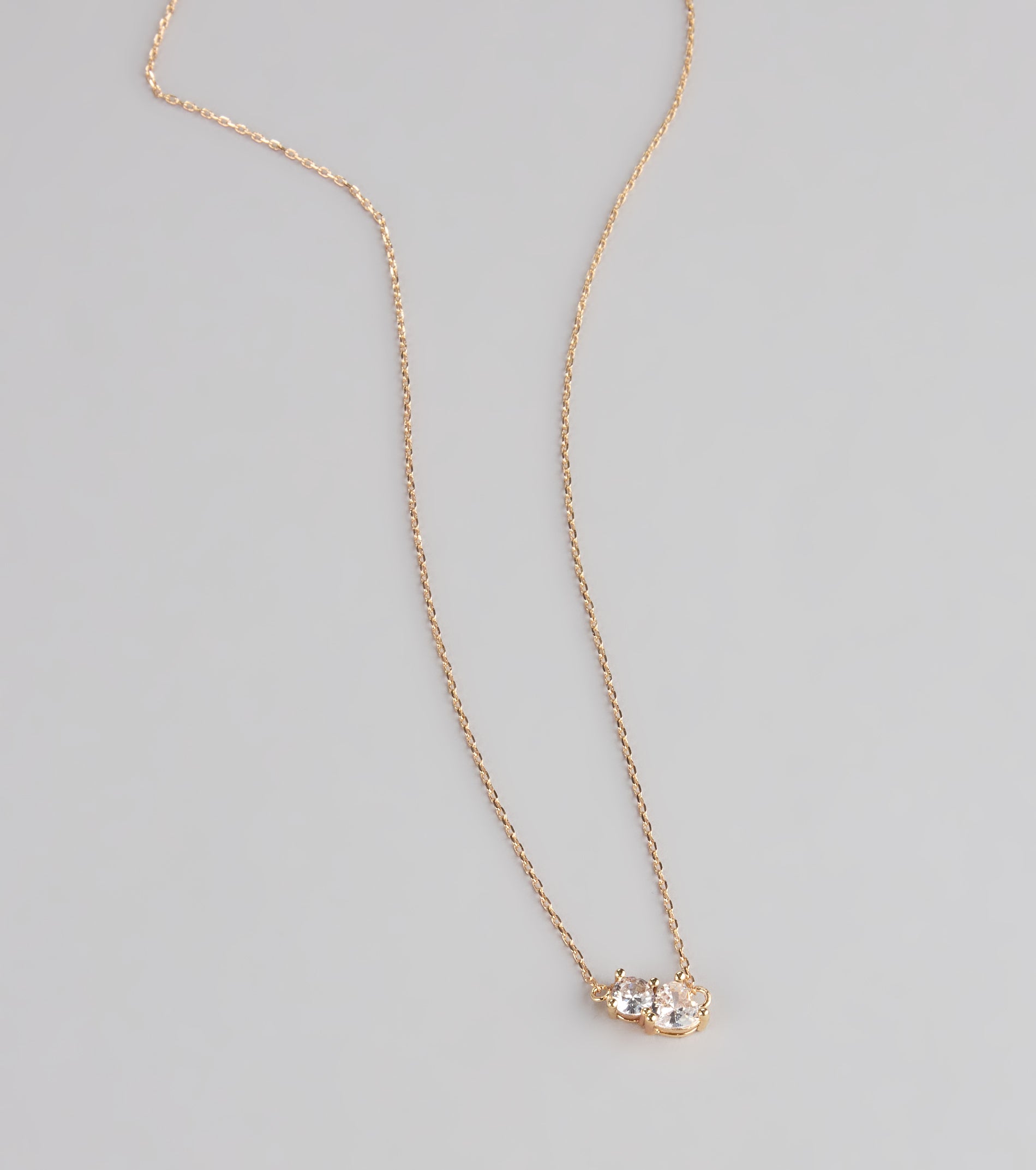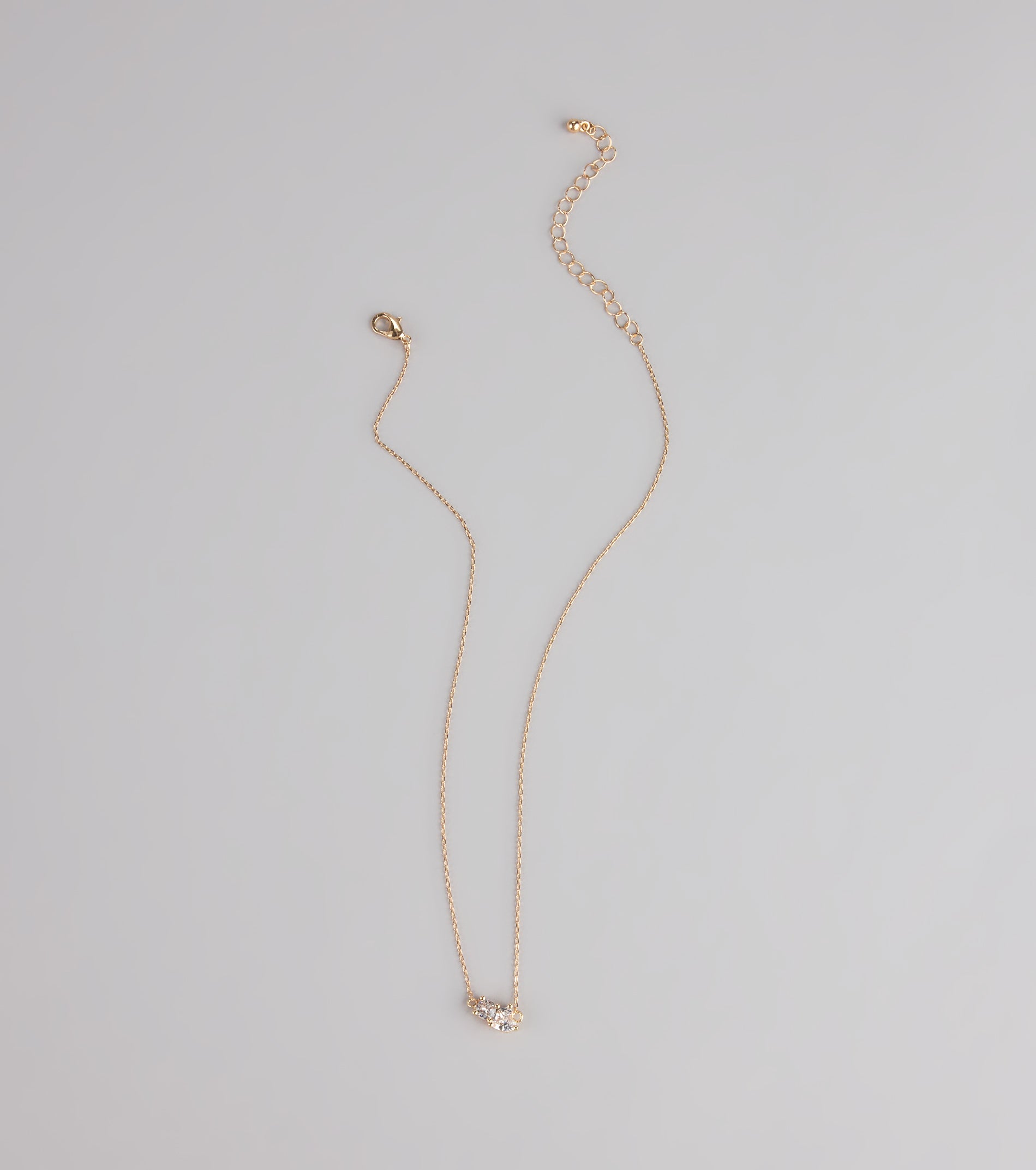 This dainty chain necklace with rhinestone heart and stud charms is the perfect layer-or-solo piece for adding just a touch of sparkle.