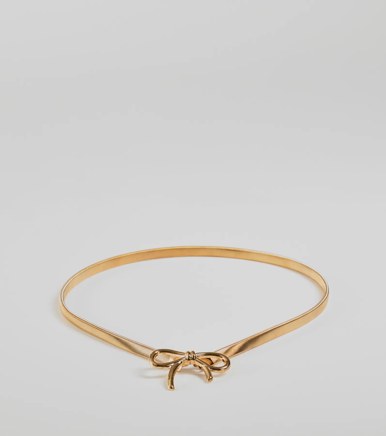 Adorn your waistline with this statement belt featuring an adorable bow accent on a stretch coil band and a secure hook closure. Complete the look in a fitted for any event!
