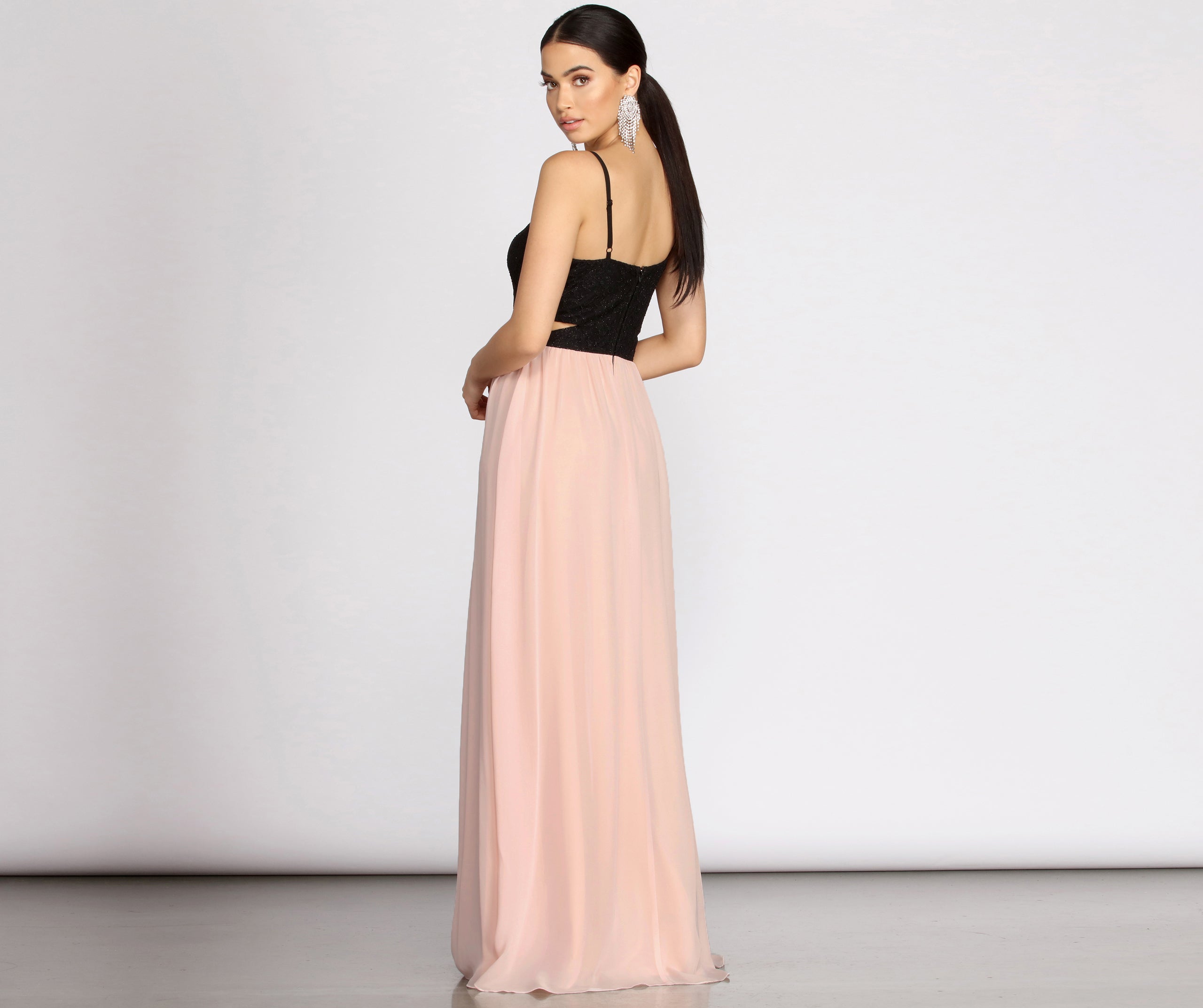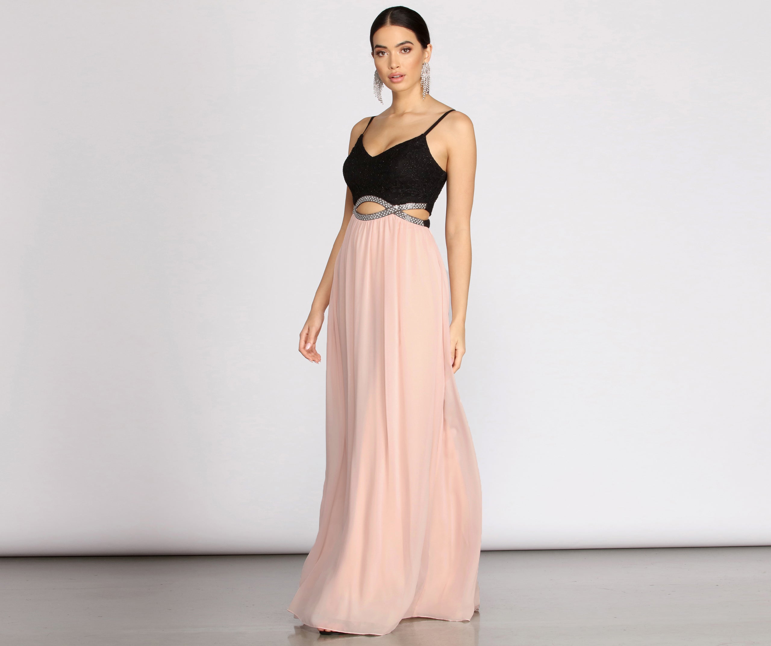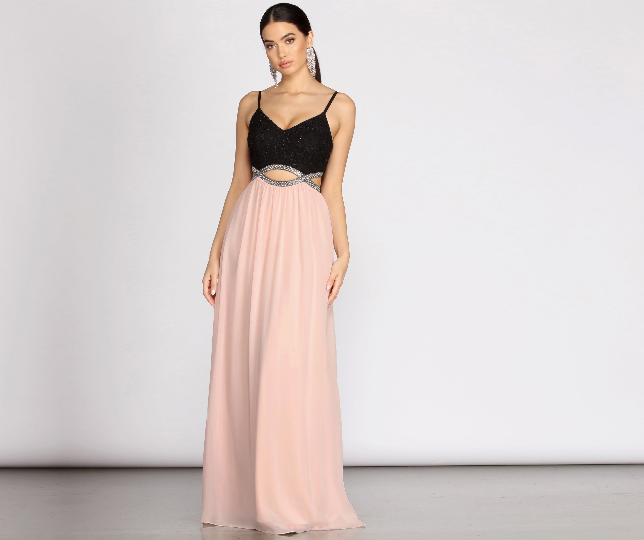 • Infinity Cut-Out At Waist With Rhinestone Trim