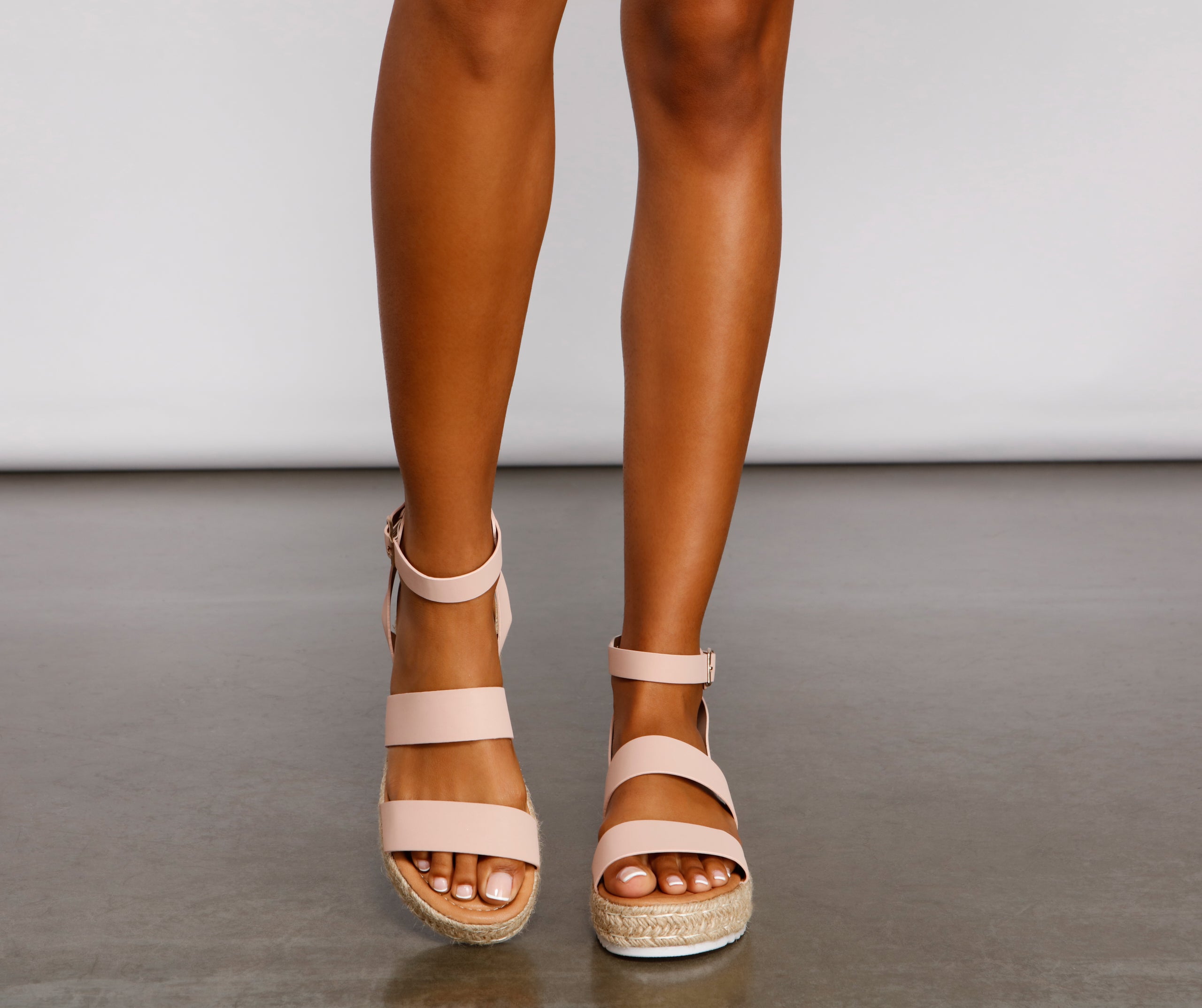 Keep it casually chic with platform wedges that keep it lowkey! The platform wedges feature an open back. an adjustable ankle strap. a triple-row strap design. and an espadrille platform. Complete look with a .