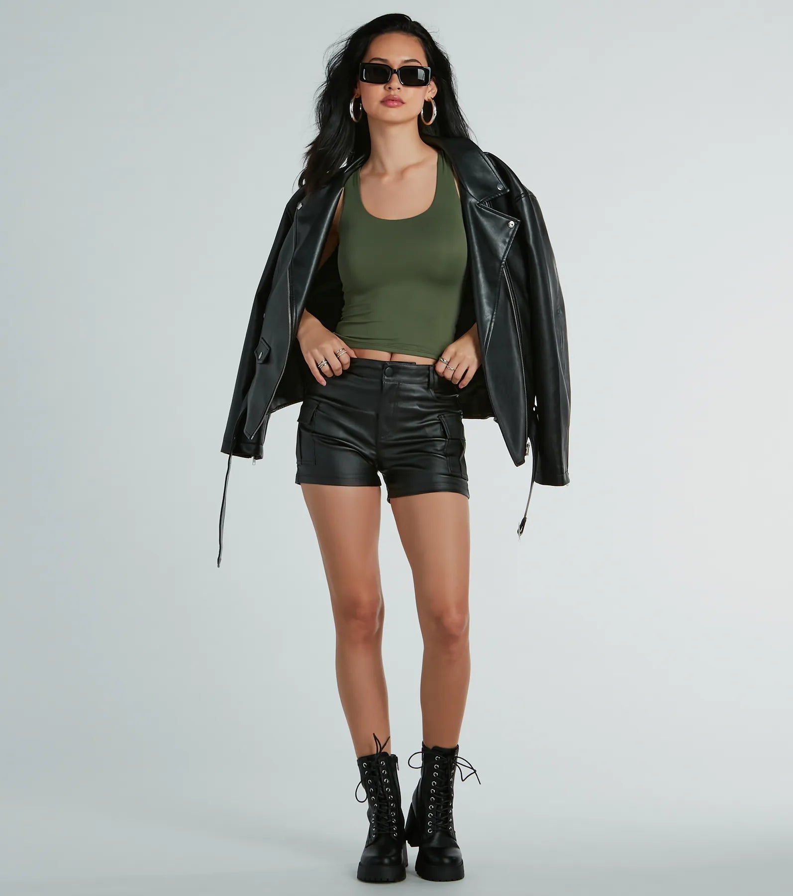 Turn up the shine in these groovy metallic faux leather shorts perfect for themed parties! With a high-rise waist and form-hugging fit. these shorts accentuate your curves while providing a flattering silhouette. The cargo flap pockets offer functionality while the front button and hidden zipper closure secure the style. Complete the look in a and heels!