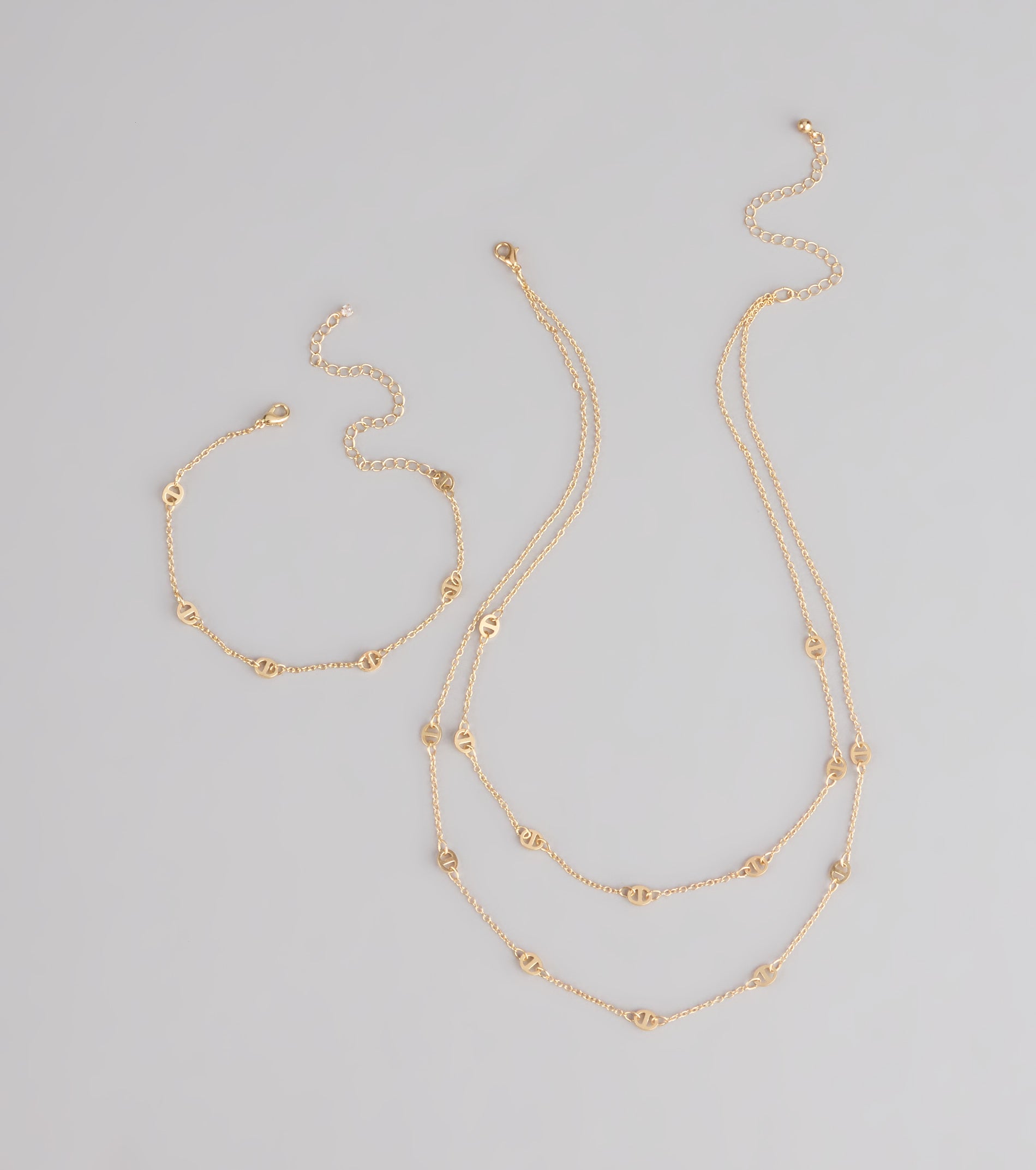 This chain link layered necklace and bracelet set brings effortless edge and polish—perfect for stacking with more or standing out solo.