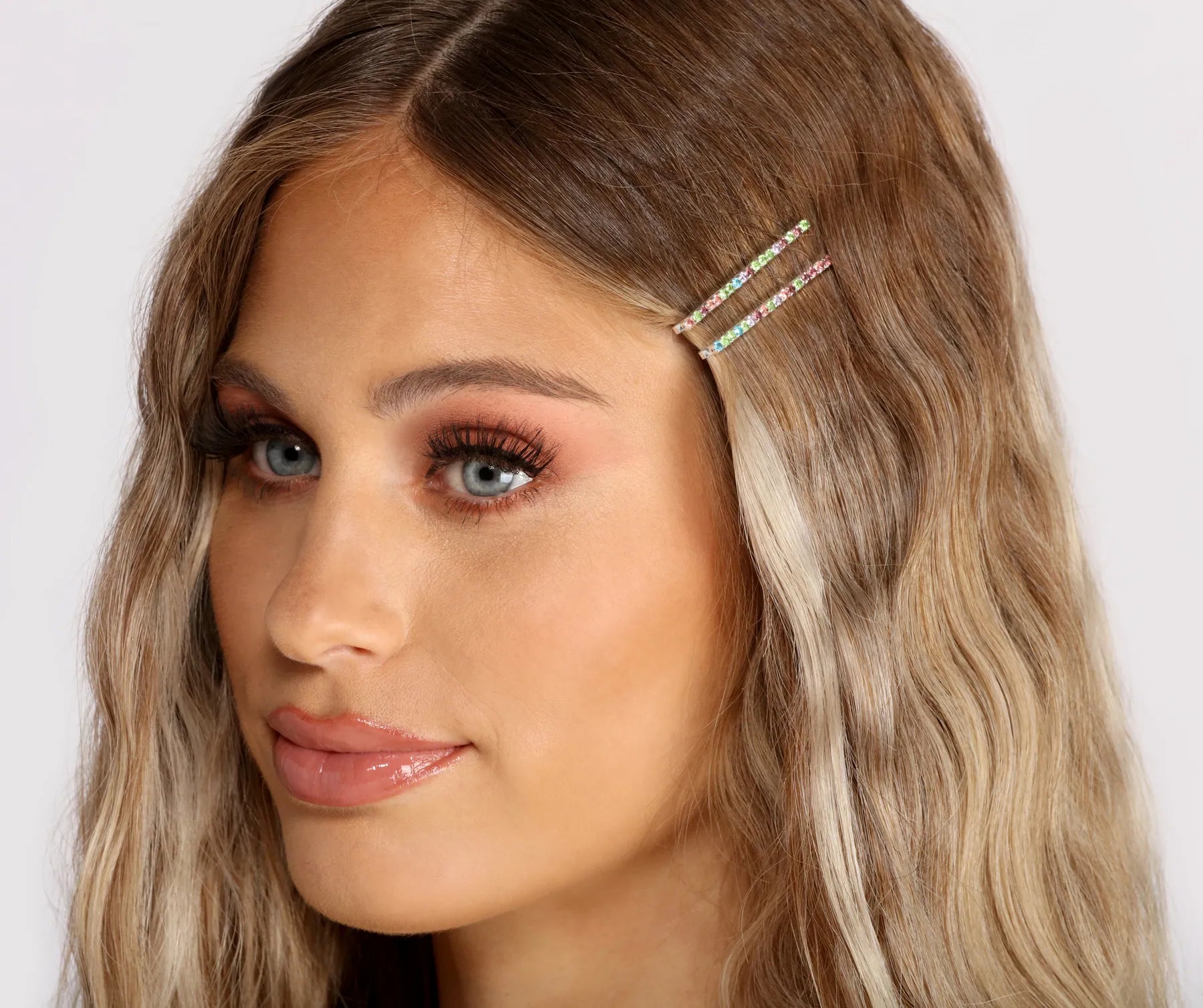 Your look is missing a pretty pop of color! Clip your hair back with these rhinestone pins for the perfect finishing touch.