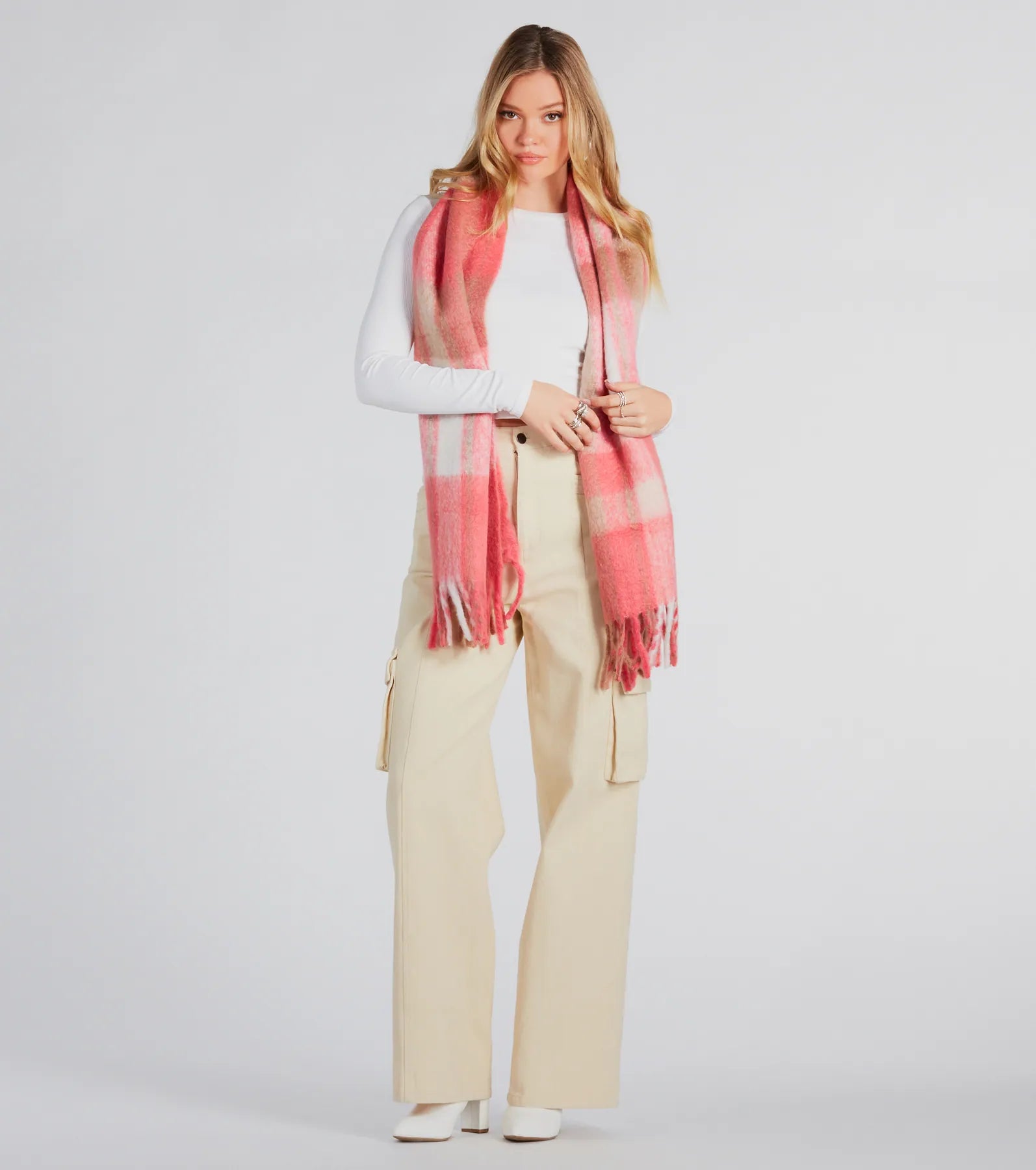 Wrap yourself in this warm and cozy plaid fringe scarf for the cutest look. Crafted from an ultra-soft fuzzy woven material with trendy long fringe hems and a plaid print pattern. this long scarf is the perfect comfy layer for your everyday ‘fits. Style with .