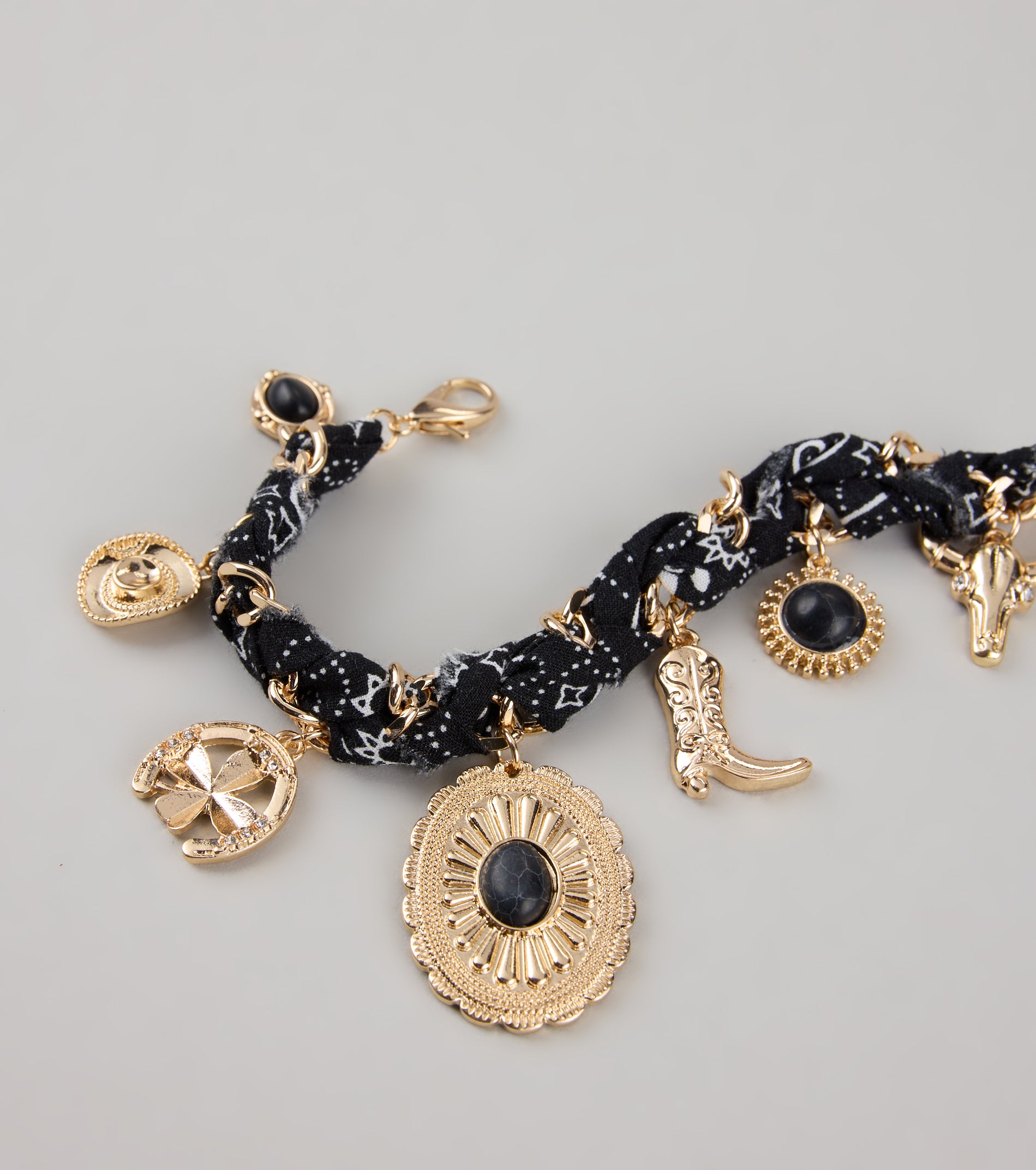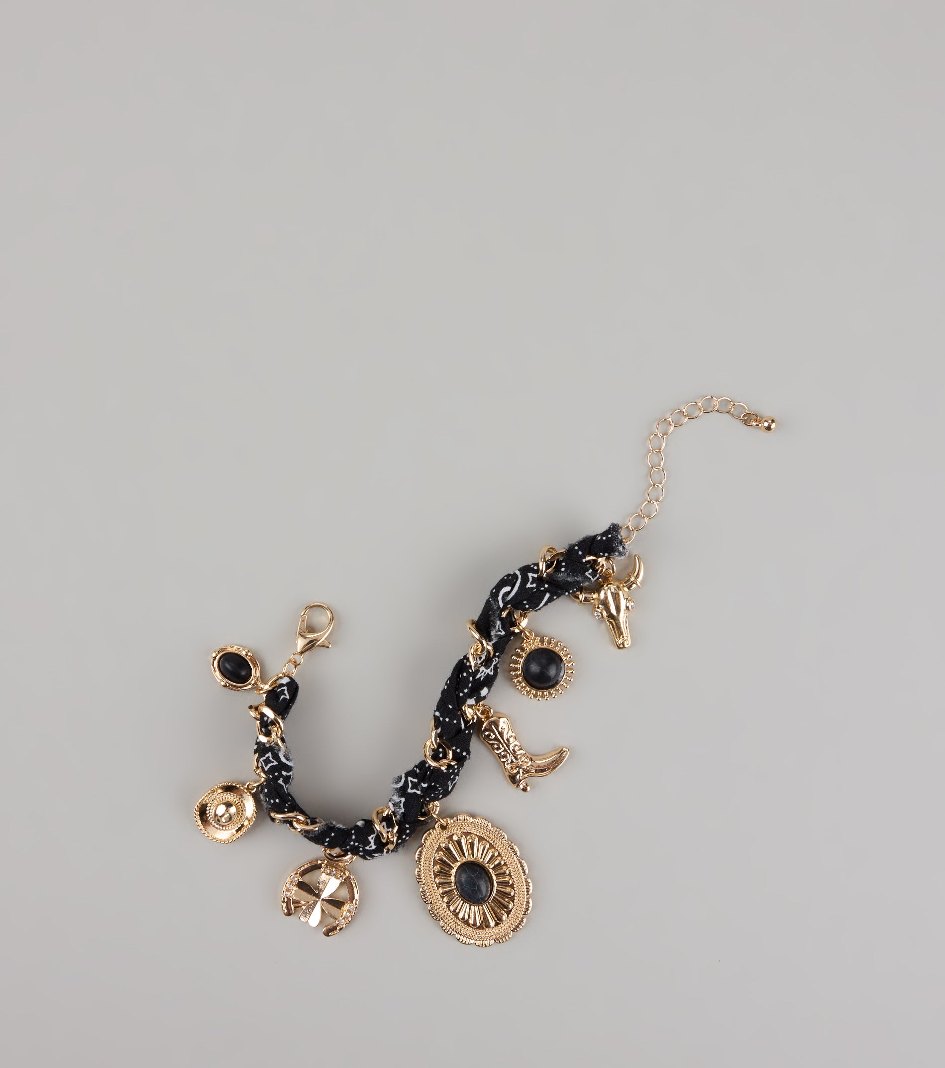 From rodeo days to rooftop nights. this bandana charm bracelet nails that western-meets-cool-girl vibe. Layer it up or let the playful charms do all the talking.